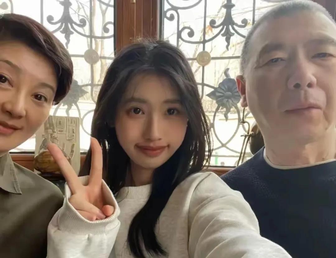 与生日照片一同分享的,还有两张珍贵的家庭合照。一张是童年时期的徐朵,戴着黑框眼镜,依偎在父母身旁,洋溢着天真烂漫的笑容。另一张则是去年回国参加活动时的合影,已经长大成人的徐朵,站在冯小刚和徐帆中间,青春靓丽,比着可爱的剪刀手,展现着少女的活力。两张照片,跨越了时间的长河,记录了家庭的温馨与爱意,也见证了徐朵的成长与变化。