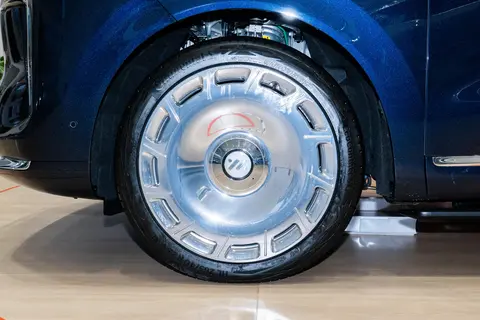 3、车身侧面:黄金比例与悬浮感:采用“0.618黄金比例”设计。平直车顶线条保证内部空间,悬浮式车顶设计增强时尚感。配置:隐藏式门把手、智行电动侧踏板;可选装20-22英寸多种造型轮毂及布雷博制动卡钳。