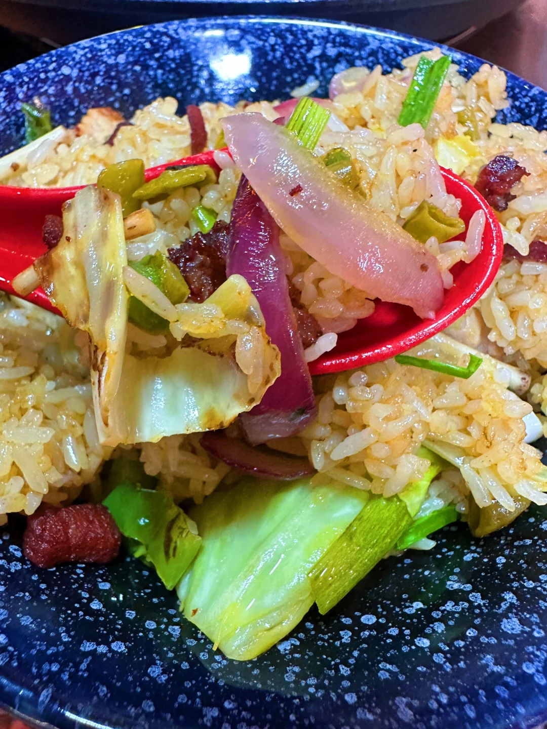 怪噜饭,里面的话,他有腊肉,包菜等,饭炒得还可以,但是里面有折耳根😅,我是不喜欢,喜欢的家人可以安排这个饭