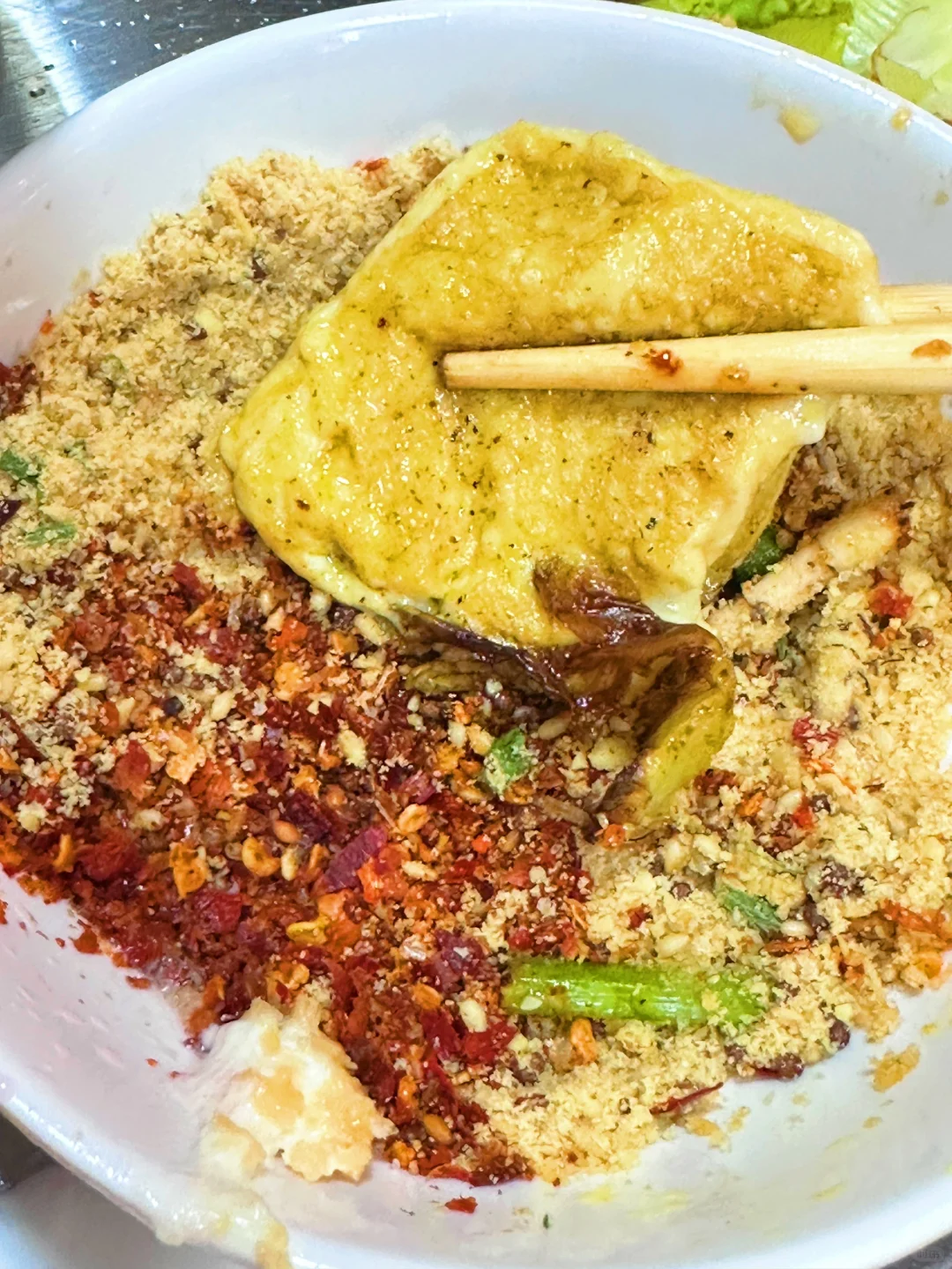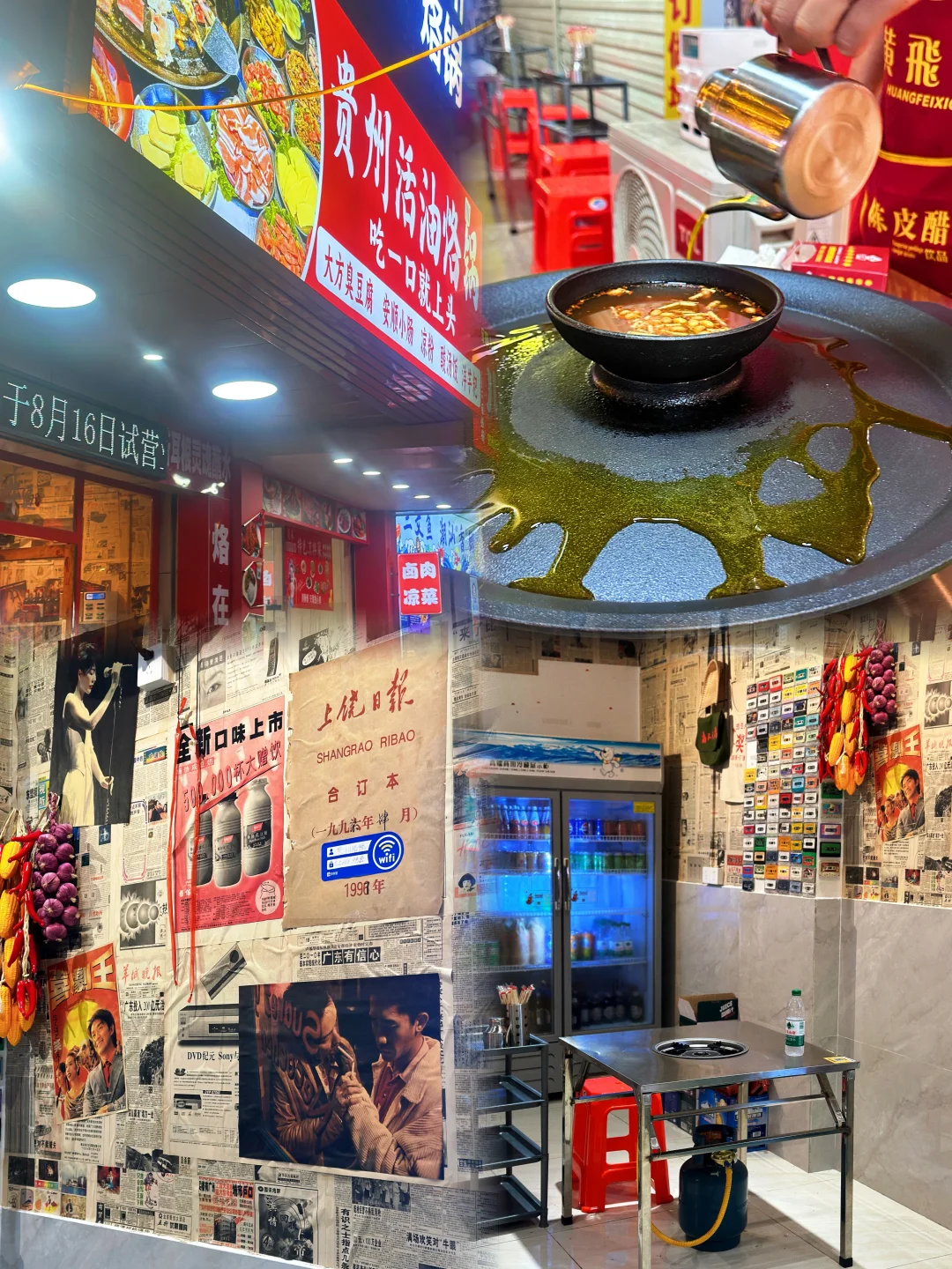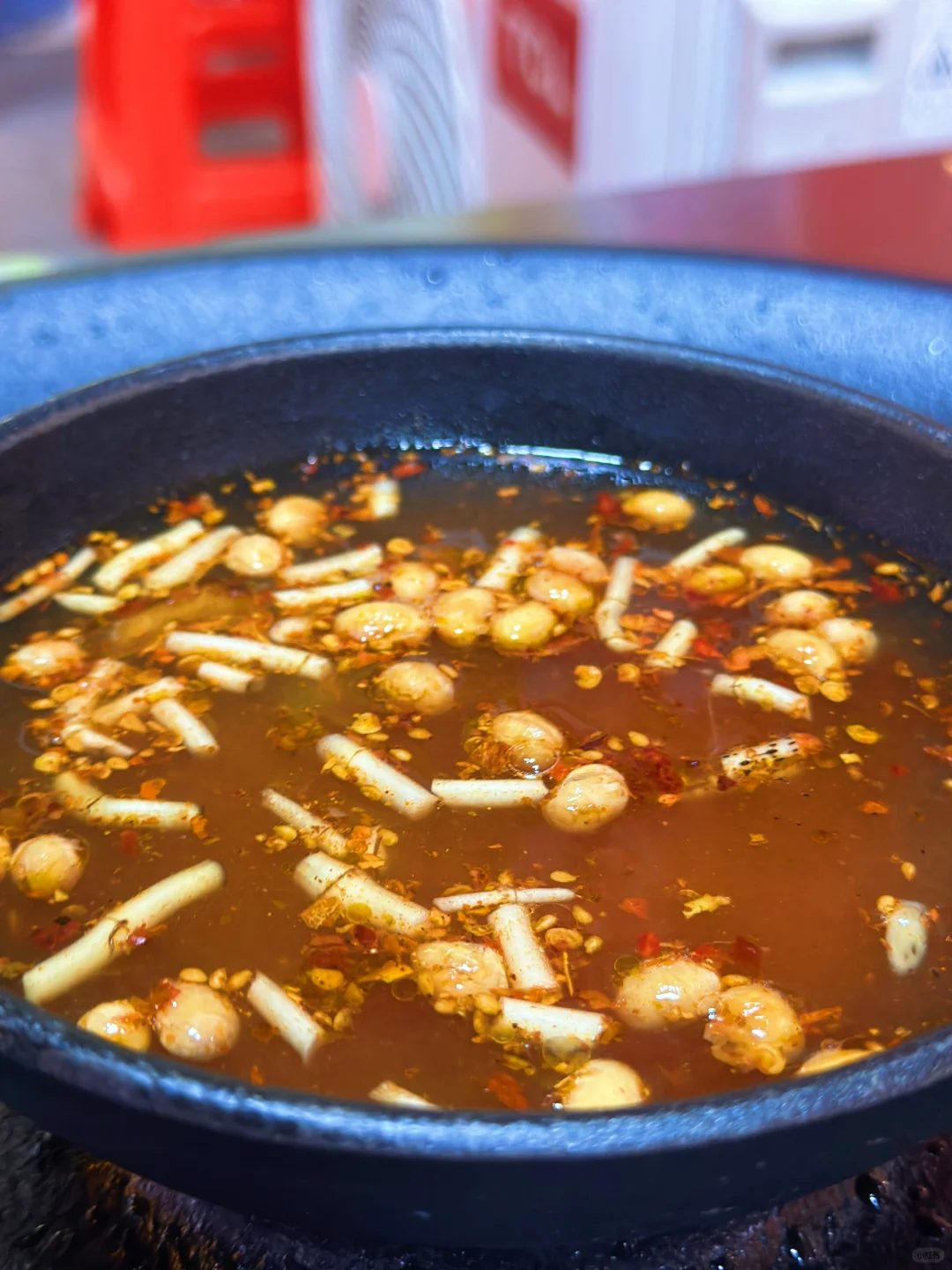 他这边是贵州特色,活油烙锅,他是有蘸水跟蘸料的,蘸水是有带折耳根的,我是吃不惯这味,蘸料不错👌
