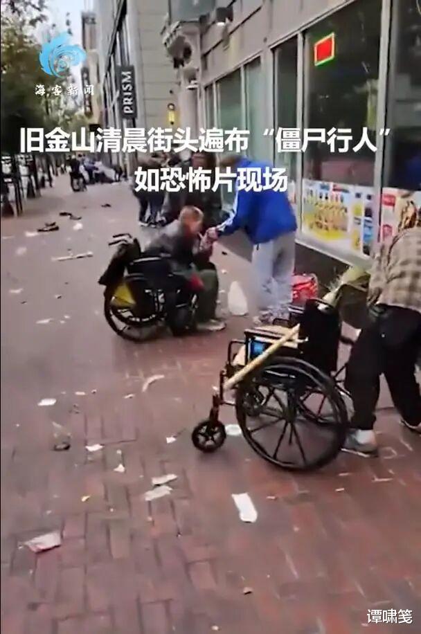 据海客新闻报道:近日,一段拍摄于美国加利福尼亚州旧金山市的视频在网络上引发热议。画面显示,清晨时分有大量疑似吸毒及无家可归人员徘徊街头,多数人出现身体僵硬、步态不稳,“状态如同僵尸一般”,现场还可见疑似毒品交易的场景。