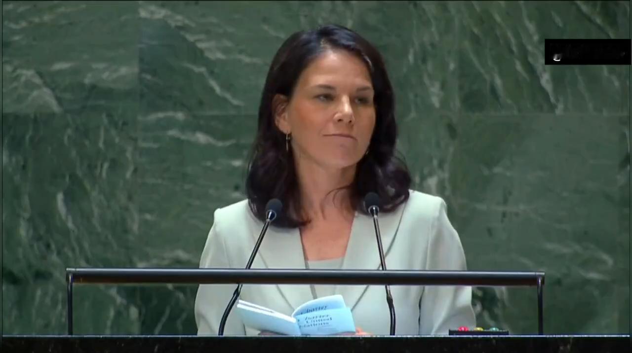 没有人愿意在联合国听德国外长贝尔博克的发言……座位几乎空空如也,少数在场的人也在