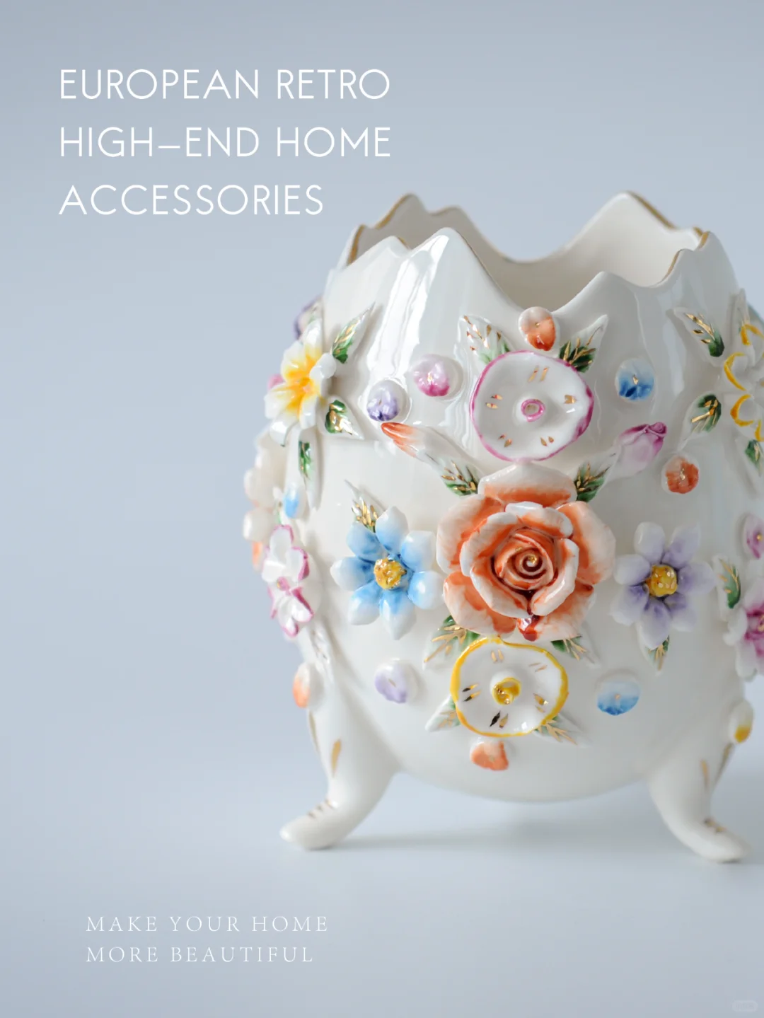 [doge]花瓶可以优雅也可以新潮 但是一款花瓶及古典又多重用途 就不能不收入囊中了! 最近超让我着迷的一款花瓶[玫瑰R] 它的外观貌似蛋壳 工艺精美得让人挪不开双眼[色色R] 立体的瓷花太高级 复古的气质中透露出艺术感 除了当做小花器 它还可以用来收纳 放一些糖果[礼物R]、遥控器、或者当做笔筒 再或者摆放在餐厅用来盛放餐叉餐具 都是可以的 这么实用又美观独特的好物 种了草[买爆R][买爆R][买爆R]就拔不掉啦!