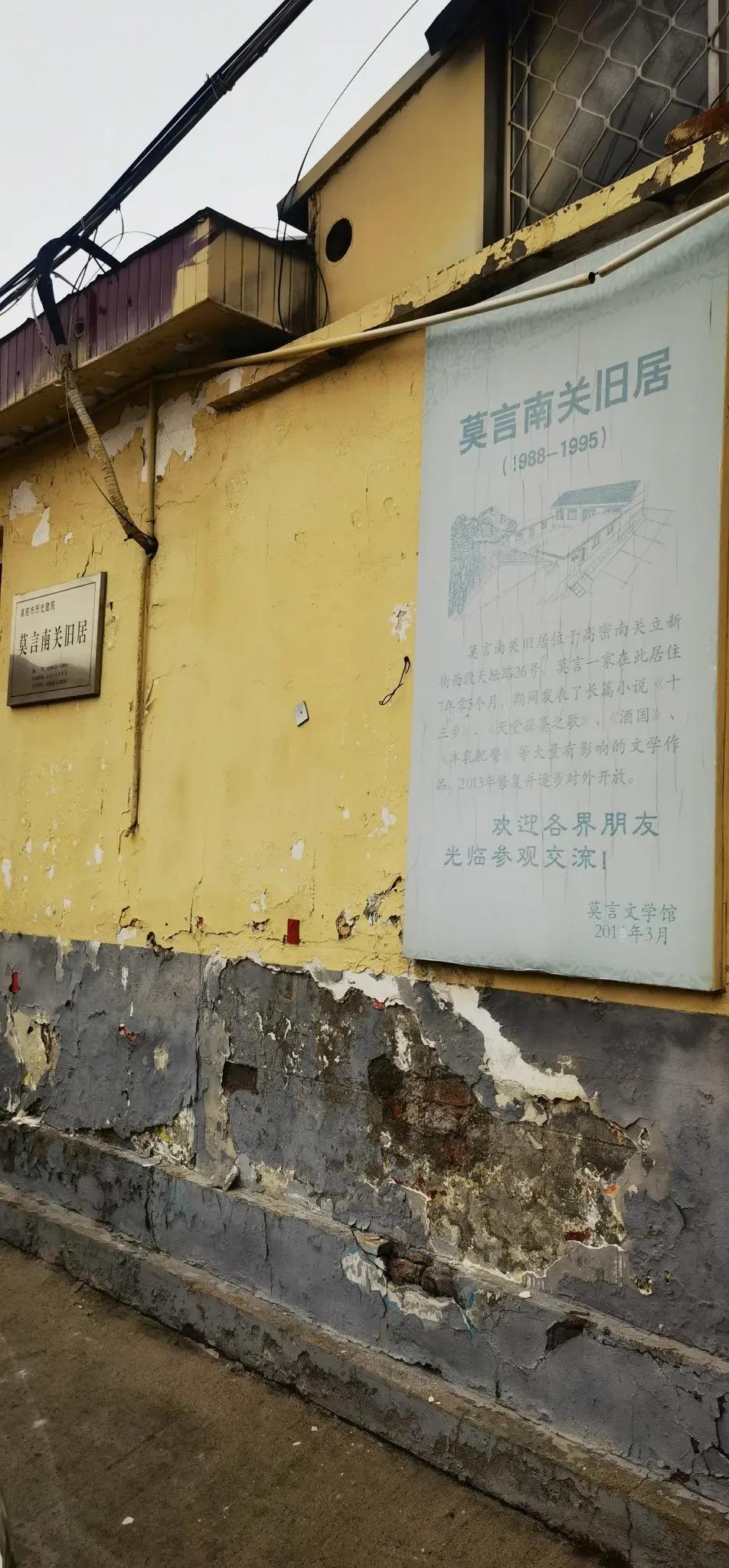 莫言旧居 我看过莫言的大多数作品,如《红高粱家族》、《生死疲劳》、《天堂蒜苗之歌》、《十三步》、《酒国》、《丰乳肥臀》、《檀香刑》、《蛙》、《透明的红萝卜》、《欢乐》等。 今天有幸再次来到这些故事的发生地,不得不佩服,莫言能在看似平淡无奇、萧条贫瘠的土地上,写出如此波澜壮阔的、曲折感人的世界巨著,这种细腻的情感和独特的视觉实在让人震撼。