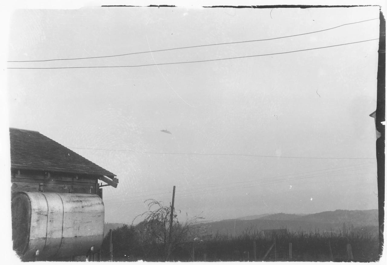 1950年5月11日,在俄勒冈州麦克明维尔附近,保罗·特伦特拍摄了两张金属盘状物体在天空中的照片。这些照片随后被多位专家详细研究。 据《UFO案例簿》报道,特伦特夫妇在当晚日落前拍下了这组经典的UFO照片。根据他们的描述,最先看到这个物体的是特伦特夫人,她在喂兔子时注意到它,随后叫来了丈夫,他用相机拍下了两张照片。这些照片首先出现在当地报纸上,随后刊登在《生活》杂志上。17年后,这些照片在科罗拉多大学的UFO项目中进行了详细分析。 亚利桑那大学的天文学家威廉·哈特曼对原始底片进行了光度学和摄影测量学的研究,得出结论称,照片中的物体与目击者描述的闪亮物体一致,照片中的光亮度和物体大小表明它可能是一个远处的人工飞行物,直径约几十米。尽管不能完全排除骗局的可能性,哈特曼指出,最直接的解释符合目击者的描述。 几位研究者后来对哈特曼的结论提出质疑,认为照片与目击者的描述存在矛盾,但进一步的研究未能找到明确的造假证据。最终,许多独立调查者认为,照片的证据和特伦特夫妇的诚信都表明此次目击事件是真实的。