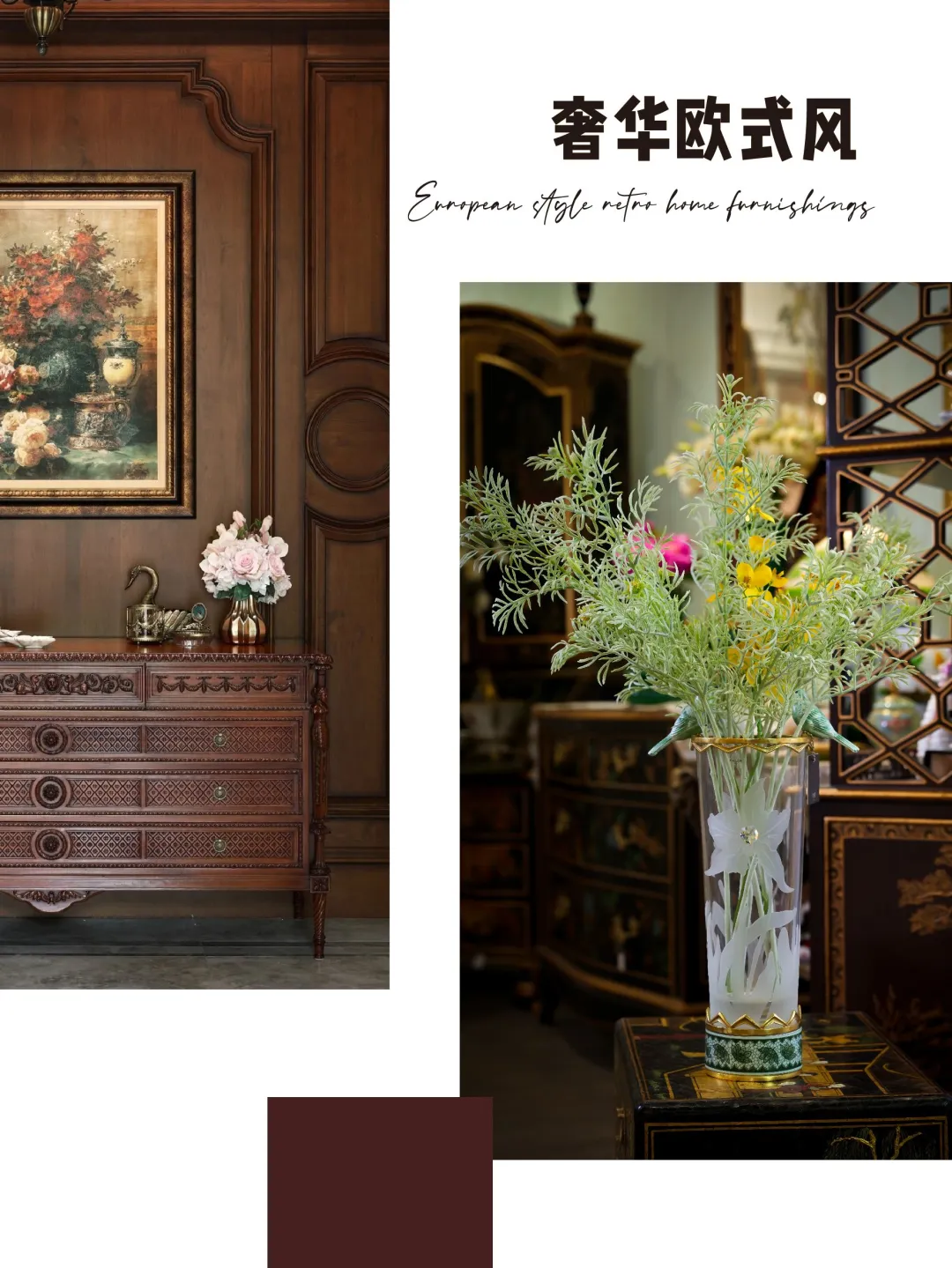 欧式古典艺术,总给人一种优雅高贵的感觉。深色调的家具艺术感十足,饱含了浓郁的文艺情调。厚重感的天鹅绒沙发尽显品质,内敛而充满贵族气息。 以水晶配铜的家居装饰物来点缀,则尤为经典! 水晶玻璃品质细腻,铜铸造的底座及边饰更为精雕细琢,展现了精湛工艺的魅力,浓厚的巴洛克风格设计,更衬托出柔美的力量,体现精致生活的独特气质~ 法式风格 | 家装装饰 | 艺术创作 | 欧式家居 复古美物 | 好物分享 | 生活美学 | 家居饰品