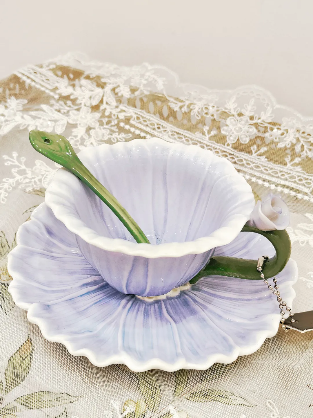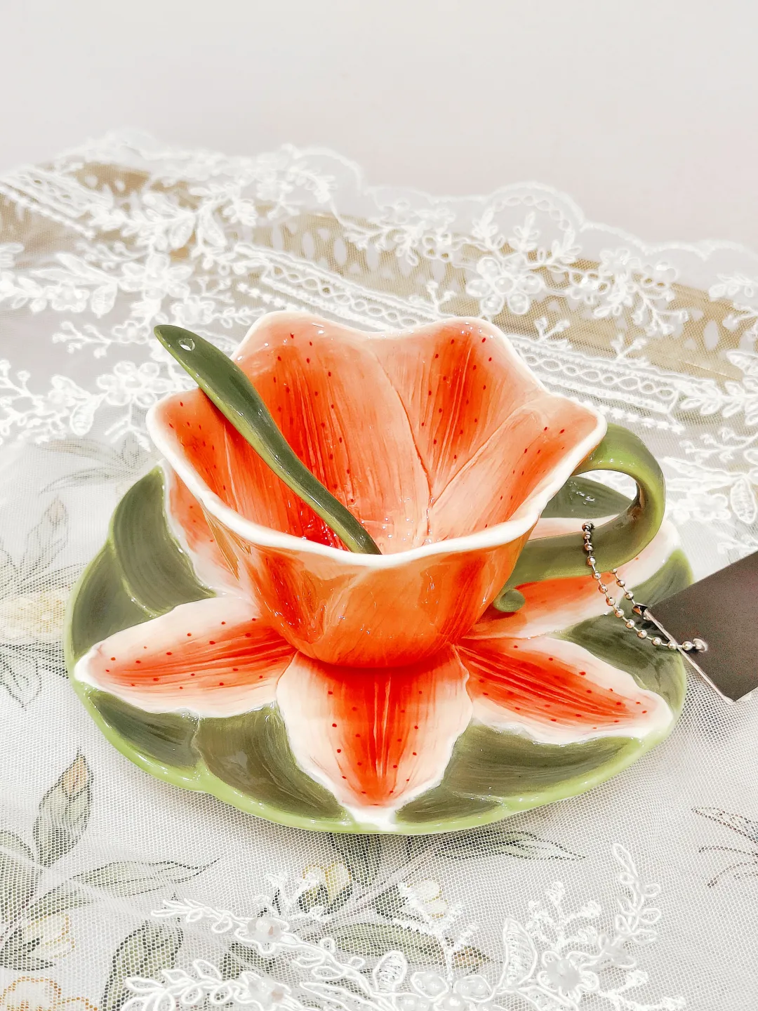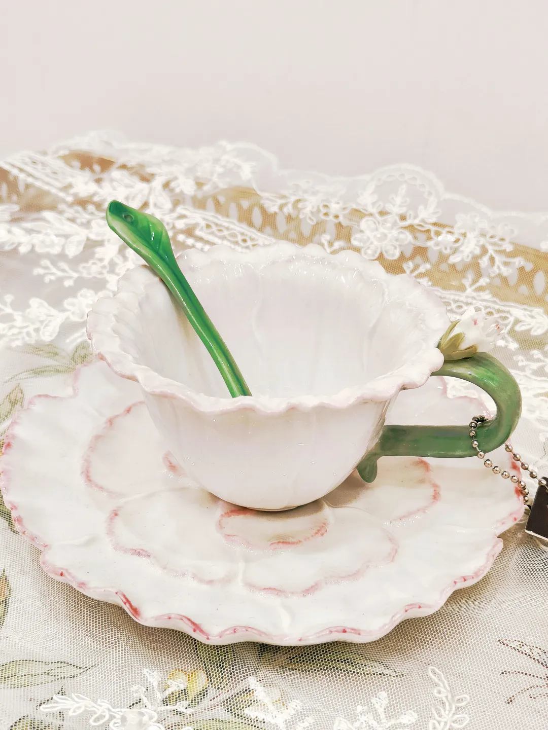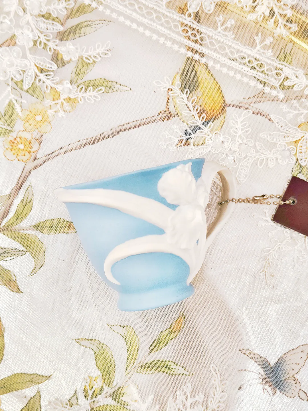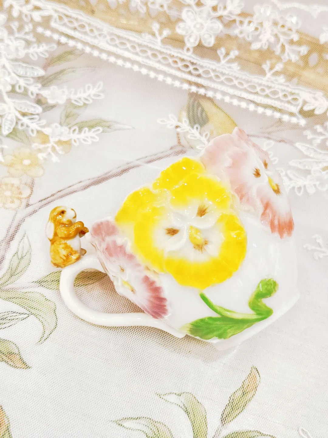 高温瓷欧式手工浮雕立体造型咖啡杯,素雅的色彩搭配,以及手工塑形的外观,巧妙的将花朵与小动物融入到杯子的设计中。
