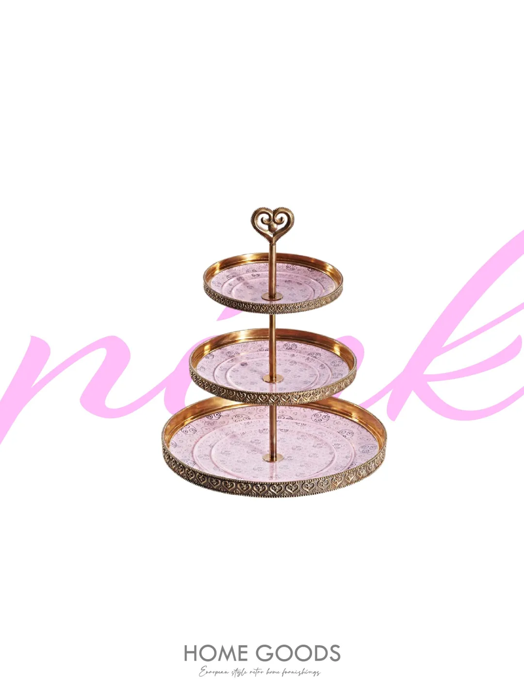 💖粉色三层高温瓷配铜水果甜品盘