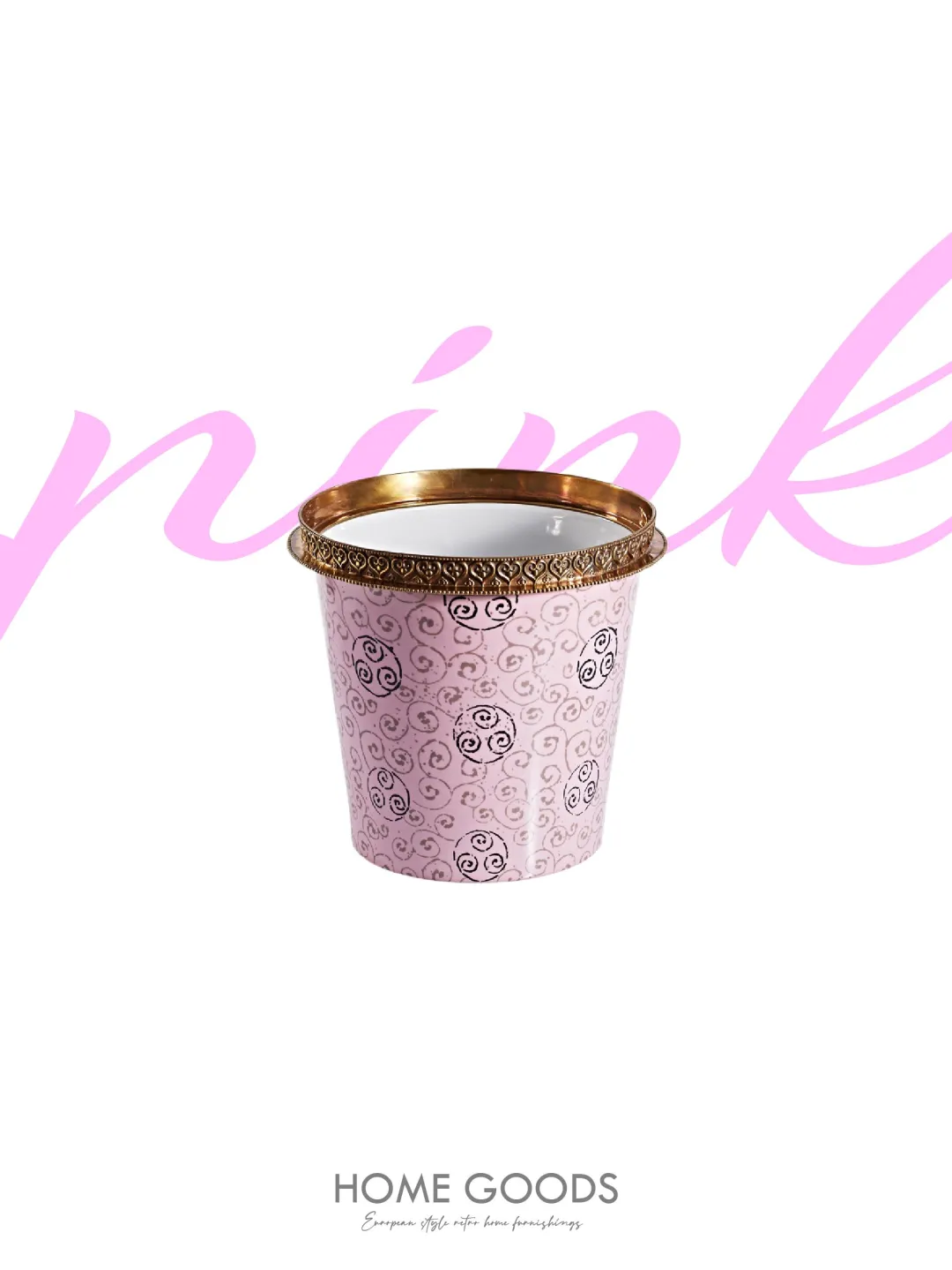 💖粉色手绘图案铜配瓷收纳桶冰桶酒桶