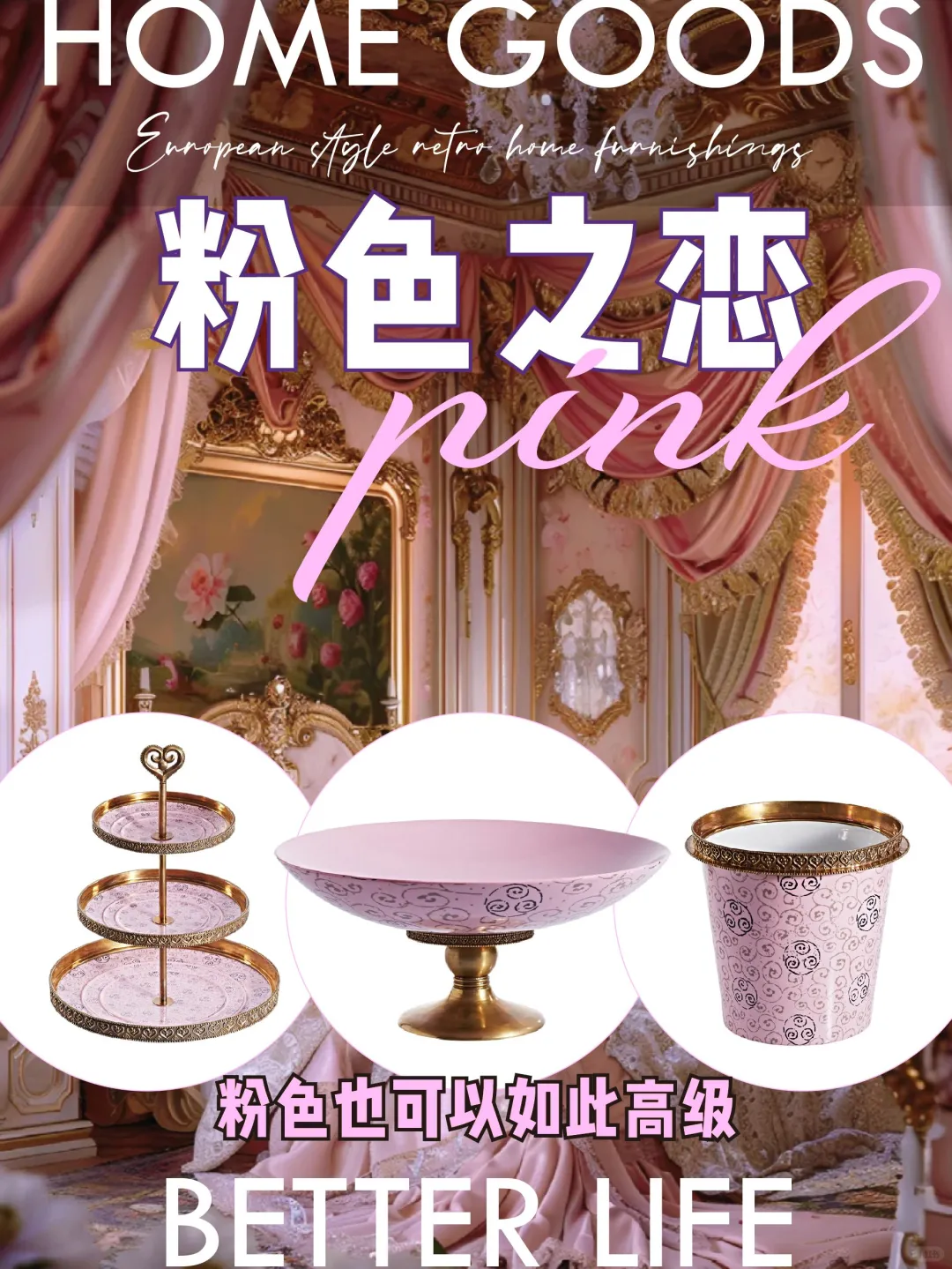 推荐一组粉色高温瓷配铜的欧式家居器物,随意组合搭配都能展现出古典高贵的情怀。