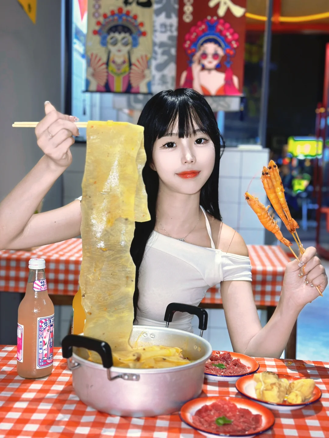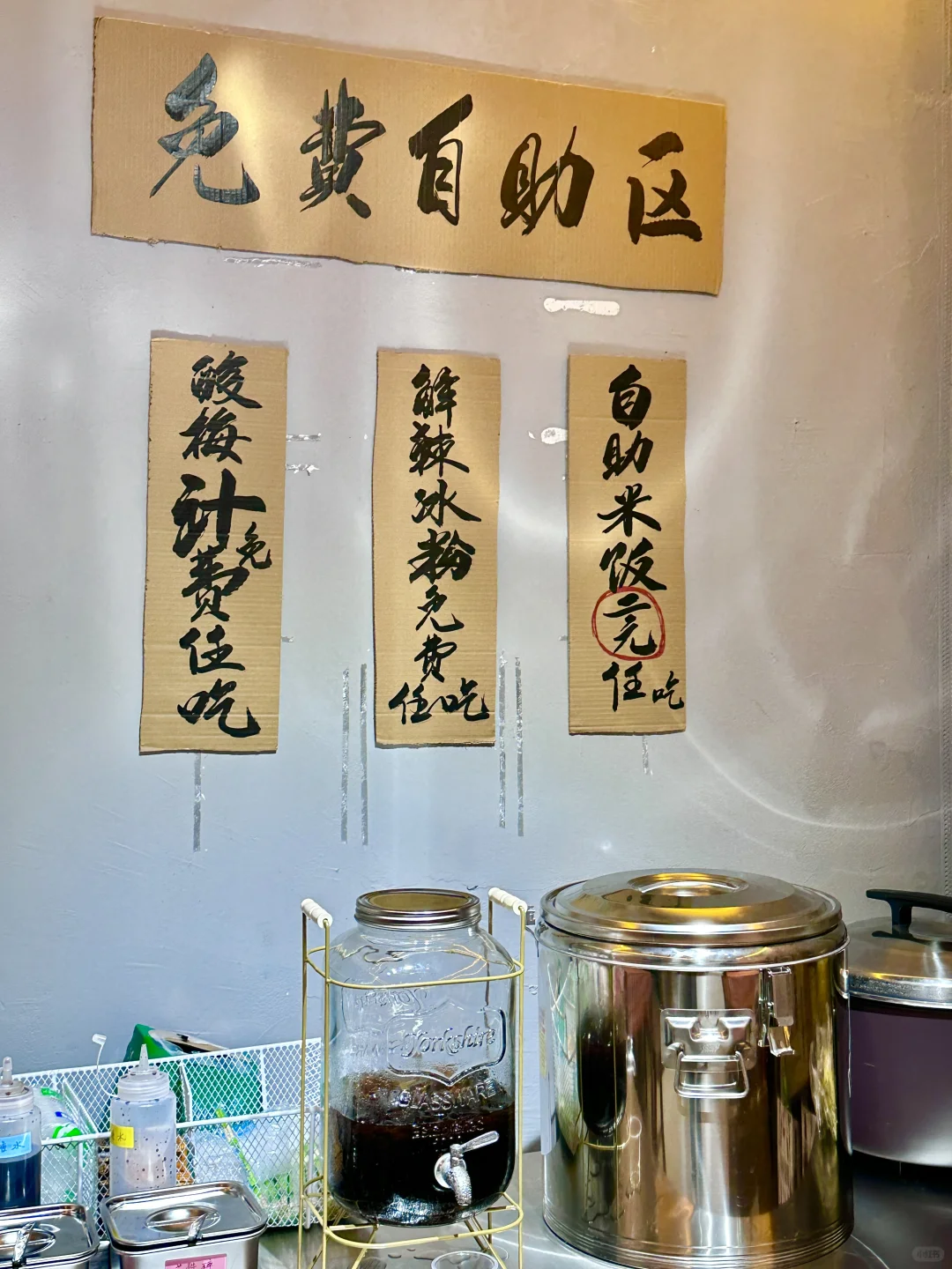 然后浅试了一下,还是蛮好吃的,他这个蒜香味没那么重,鲜香麻辣,辣度也是可以调整的,建议普通辣🌶️而且还有冰粉跟酸梅汁自助🆓吃