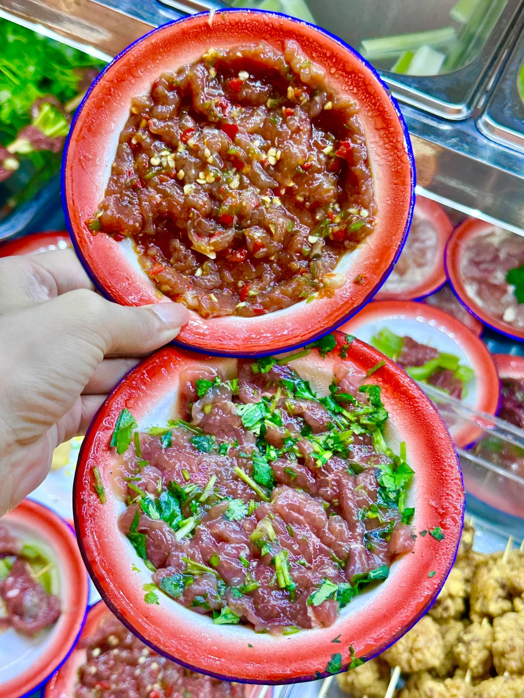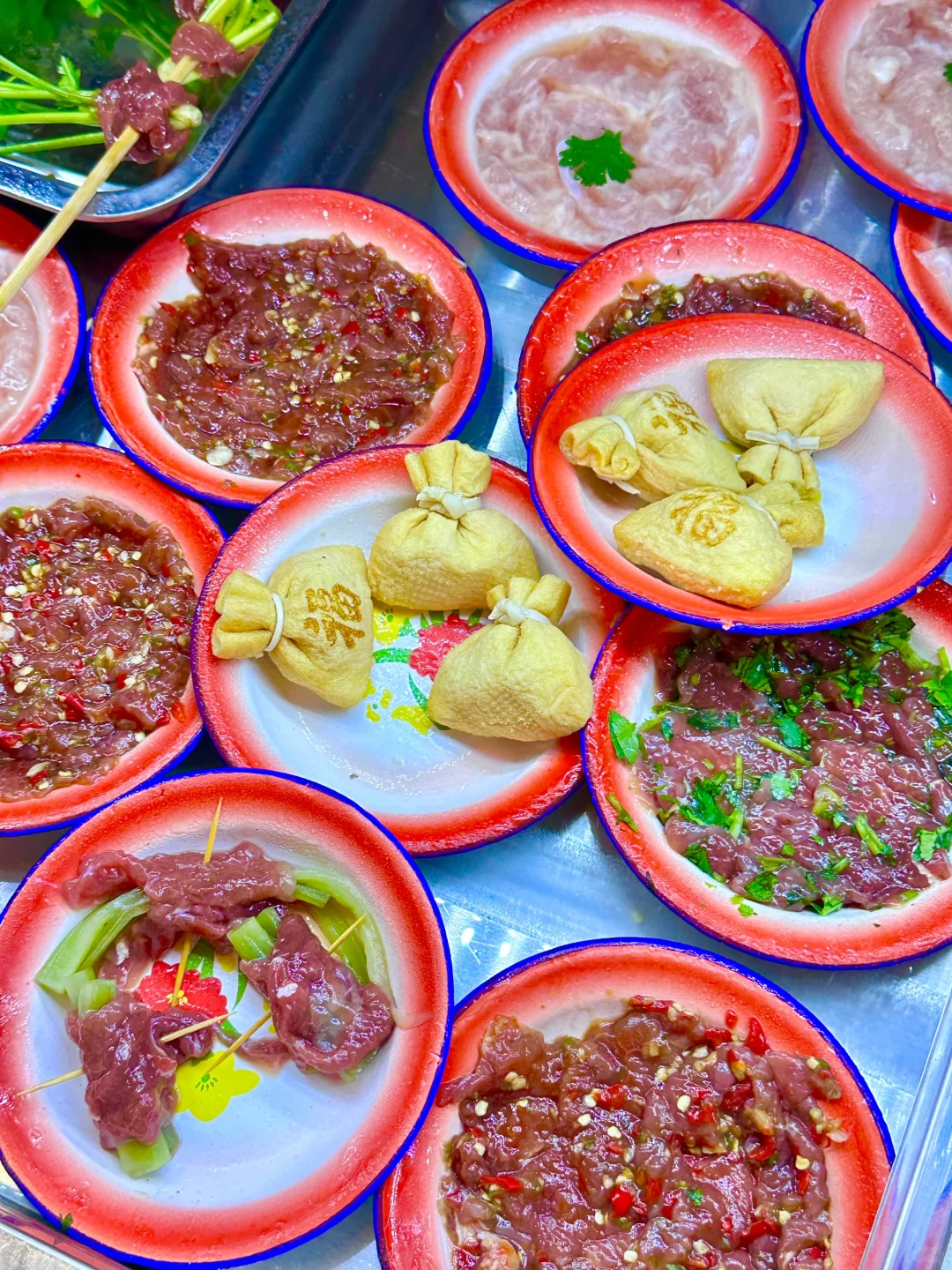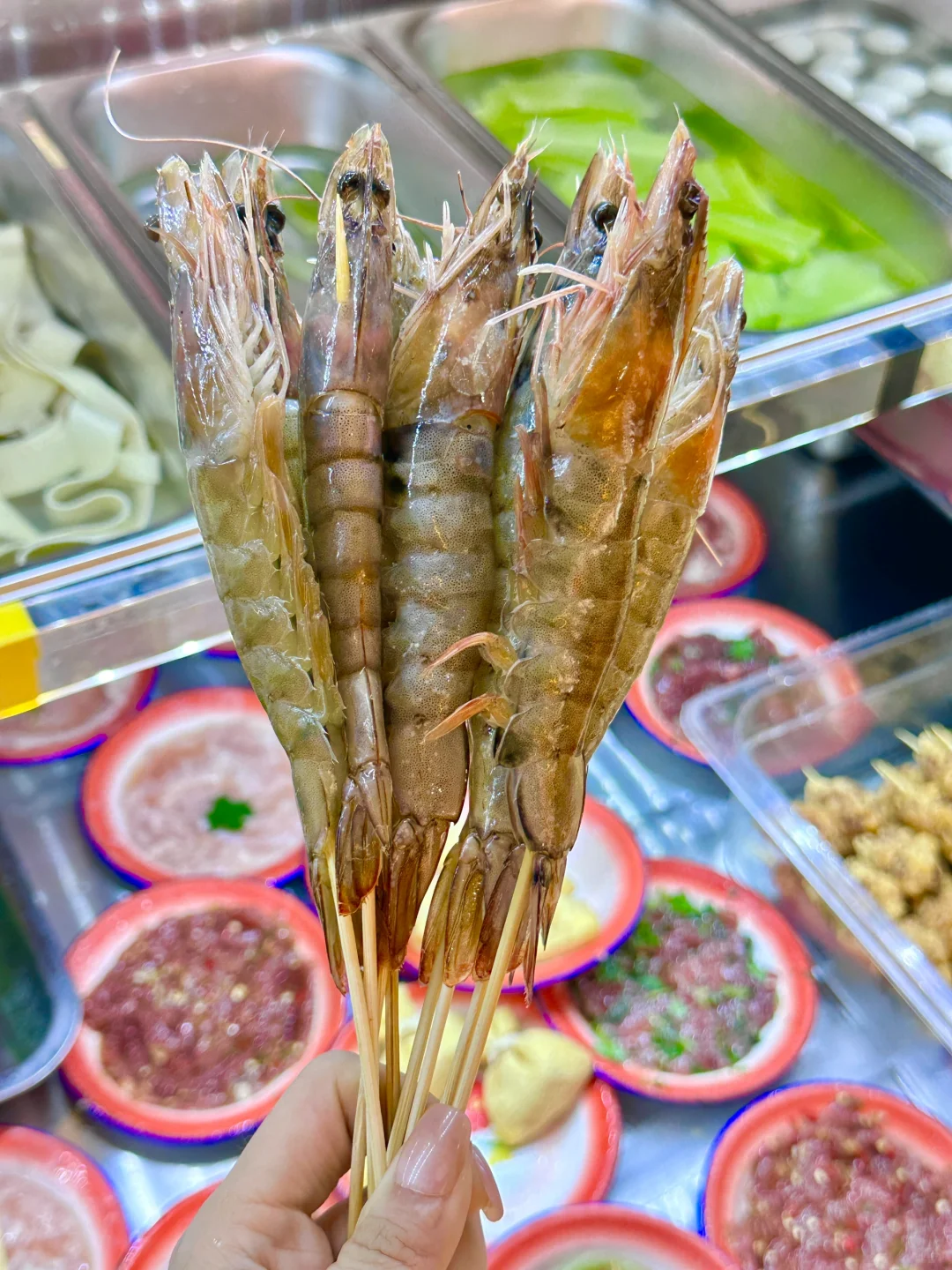 菜品的话,相对比较优惠吧,人均是30.40➕,也是有一个大冰柜可以任选的,菜品还是比较新鲜的,像双椒牛肉,还有炸肉丸,大片土豆,虾滑,宽粉,这些特色菜我是推荐的🌟,他的牛肉,我个人觉得很不错,都是老板现切的,吃的出来的😋