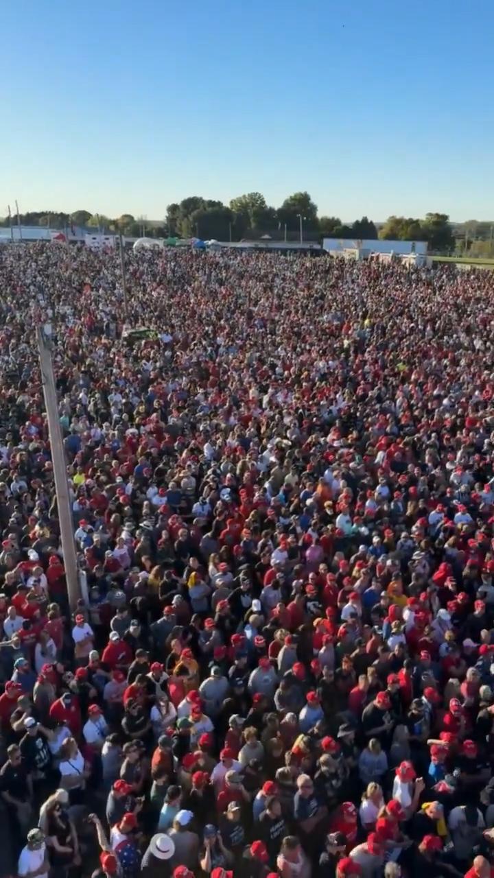 去听川普演讲的人确实比去听哈里斯的人密集。