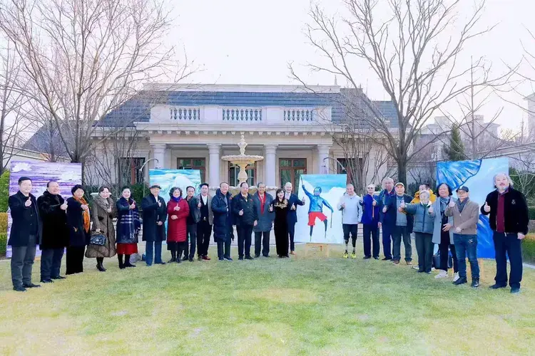 国际知名画家晨嫣曌与原北京奥委会副主席、全国政协委员蒋效愚先生、奥运射击冠军许海峰、原央视体育频道负责人、北京奥运火炬手、米兰冬奥会万里行主席岑传理、原全国政协委员,北京体育大学校长池建、资深外交官、原中国驻澳大利亚等多国领事姜云、著名表演艺术家赵丽蓉之子、国家一级书画师盛大鸣、国家一级京剧演员刘金泉、英国资深油画收藏家、法国巨匠莫奈作品绘画鉴赏家、画廊主罗伯特(英国)、企业家迪迪艾(比利时)在纪念现代奥林匹克运动会132周年及中法建交60周年纪念展、喜迎米兰冬奥会万里行活动中,晨嫣曌致敬法国巨匠莫奈的原创作品《梦境白莲》合影。