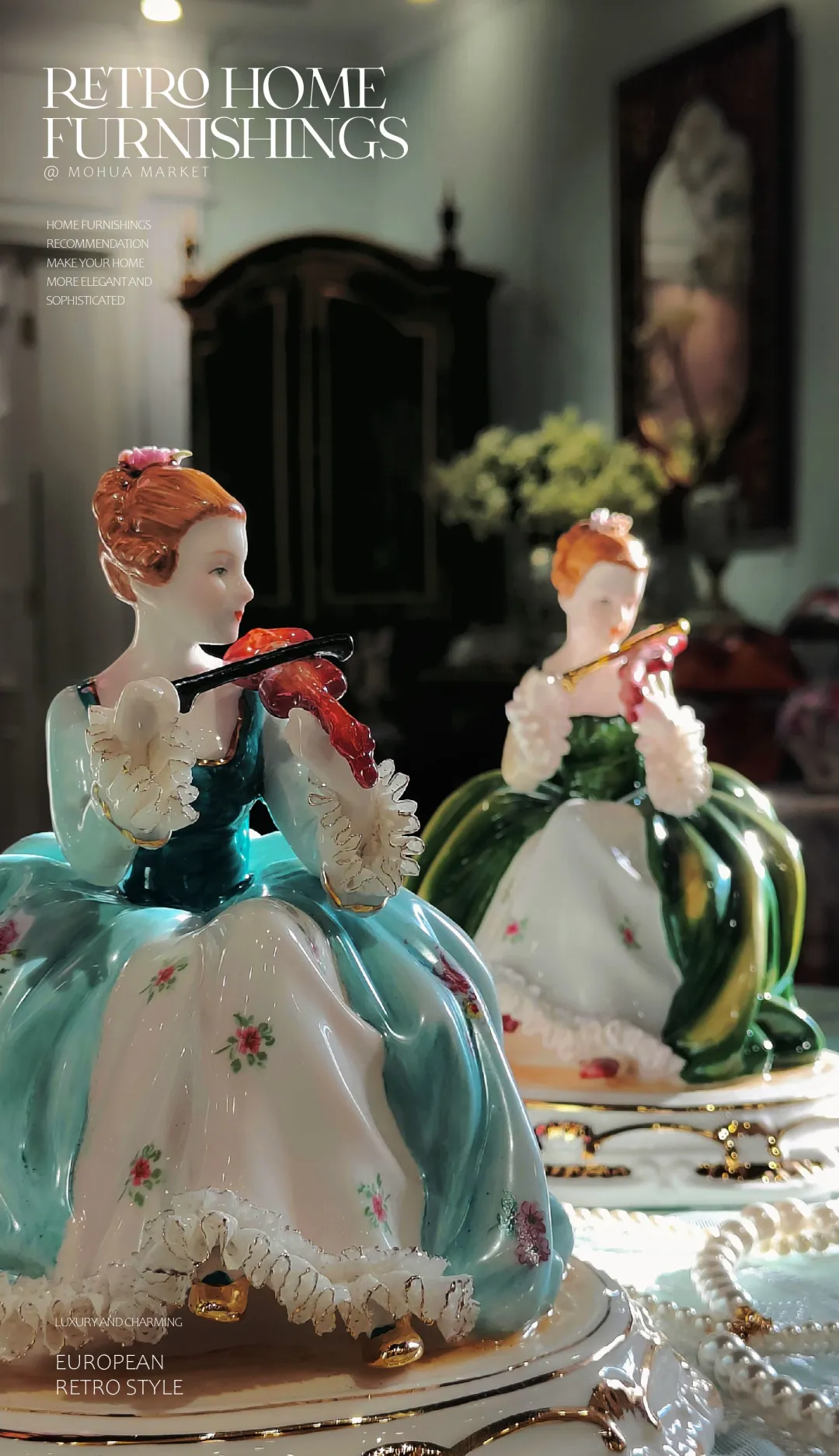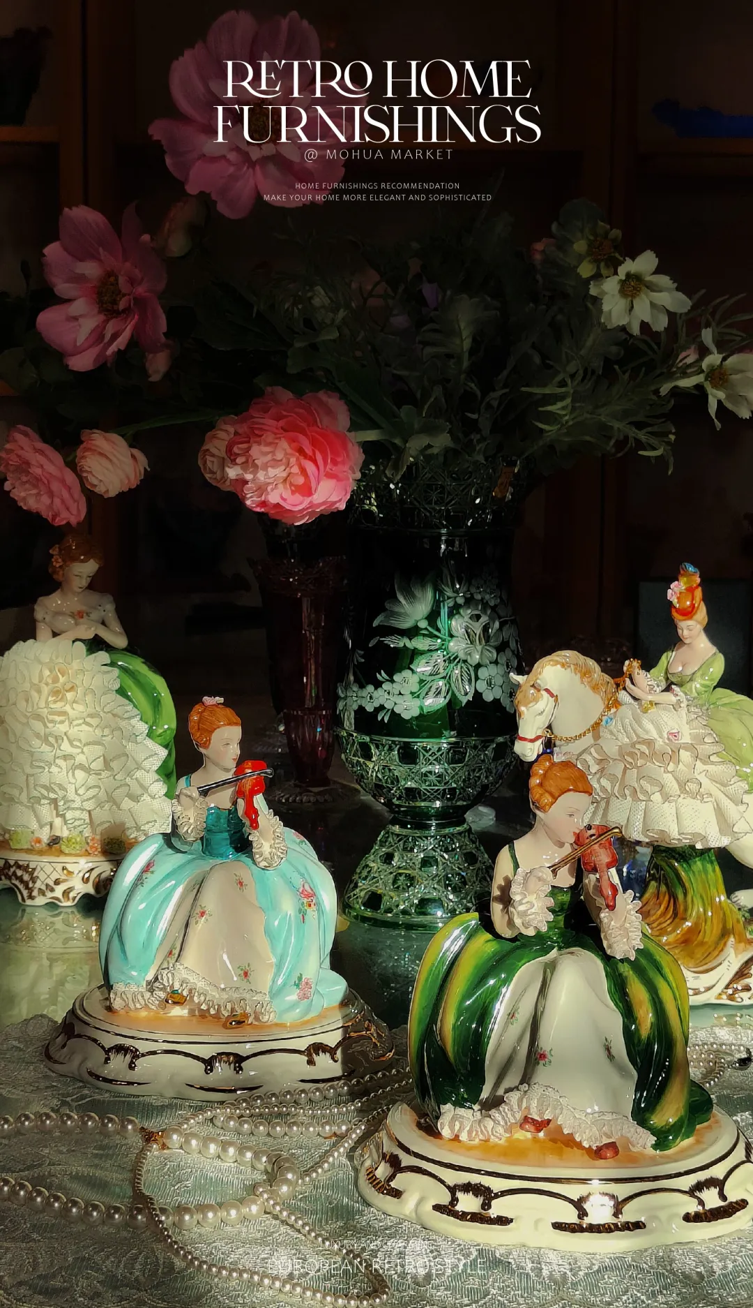 匠人们先将一片片的真蕾丝浸入到瓷液当中,然后手工粘贴在瓷器的主体上,经过高温烧制后,真蕾丝被烧成粉末,而仿真性极强的瓷蕾丝就此形成。这种特殊的工艺,最先被匠人们用在了以描述上流社会生活为主的人物瓷俑上。