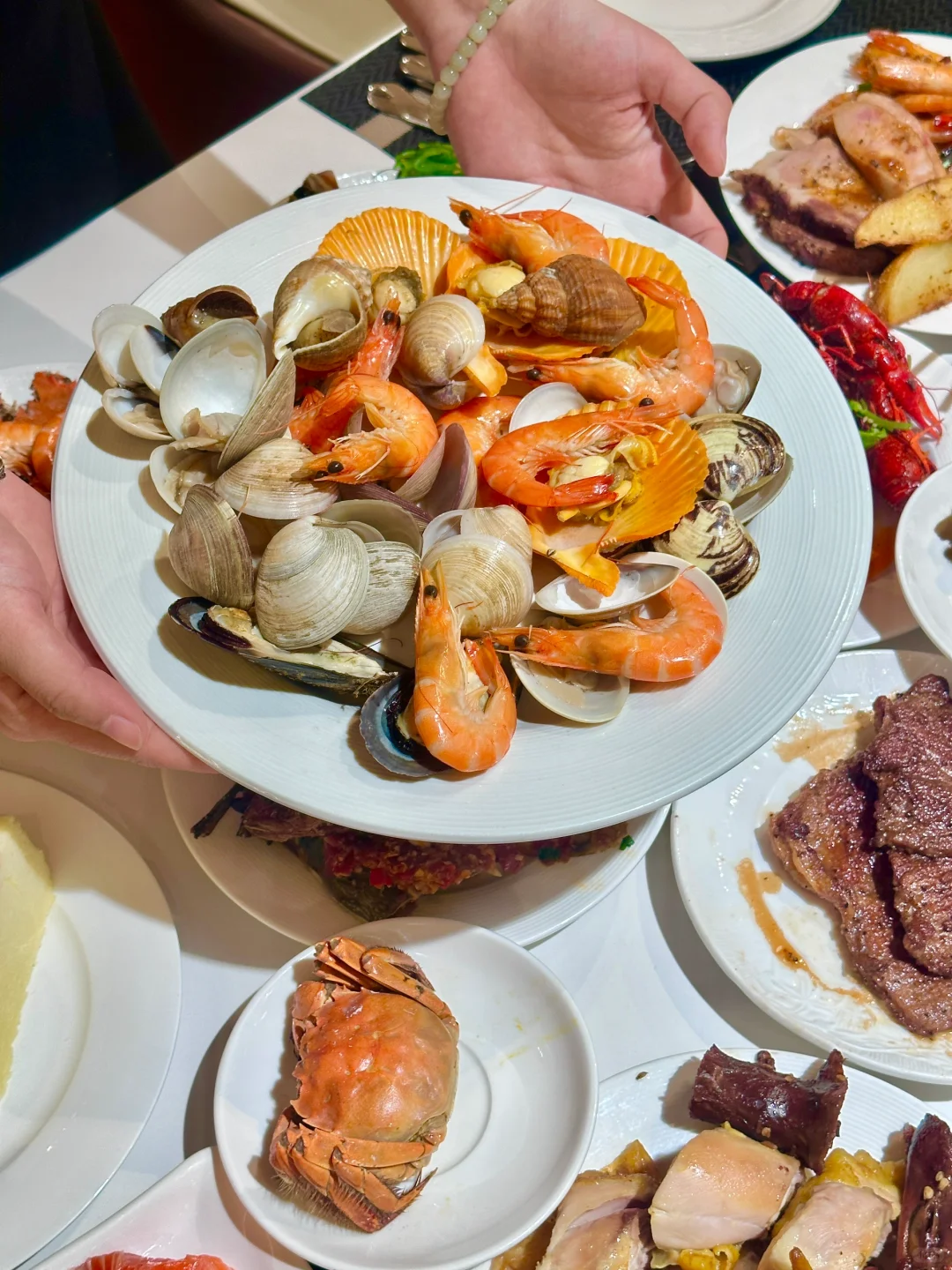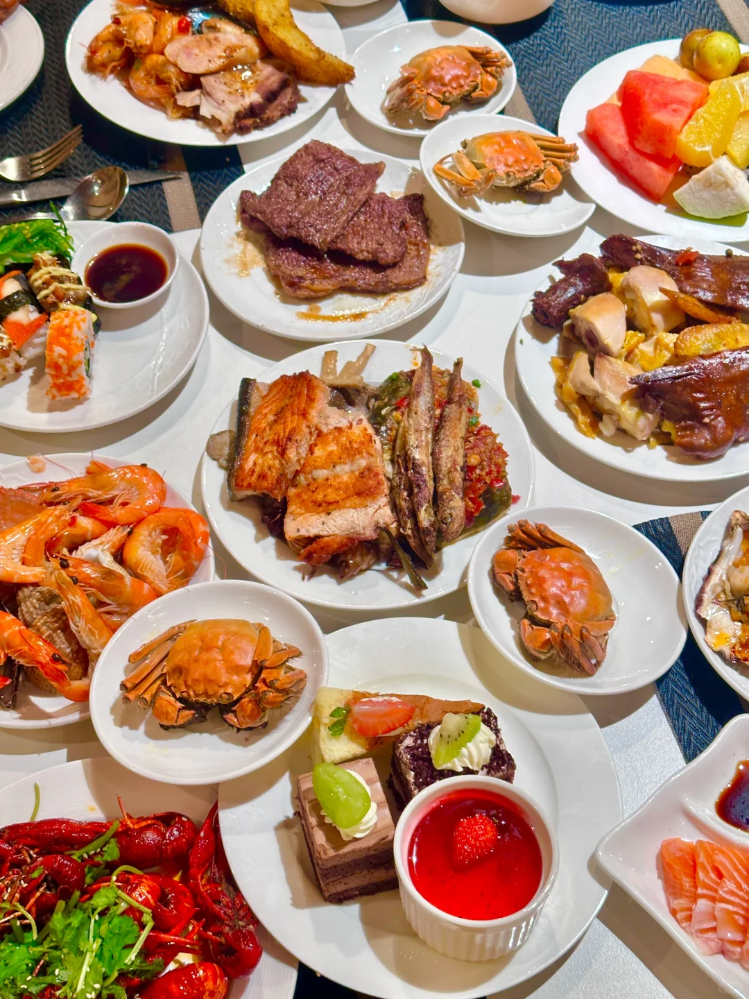 没错啦,就是翔丰酒店的自助餐啦✨ 三文鱼🍣大闸蟹🦀️牛排🥩 皮皮虾,青口,花螺等等✨ 真的超多海鲜🦞 还有各种精致小蛋糕🍮 超多热菜😋 巴掌大的生蚝🦪 …… 而且这里可以狂炫三个小时⏰ 🆓停车 服务态度🉑️ 套餐一大一小一百多💗 环境味道都是🉑️的,想吃海鲜自助餐🦞,还得是五星级酒店🏨哈哈哈