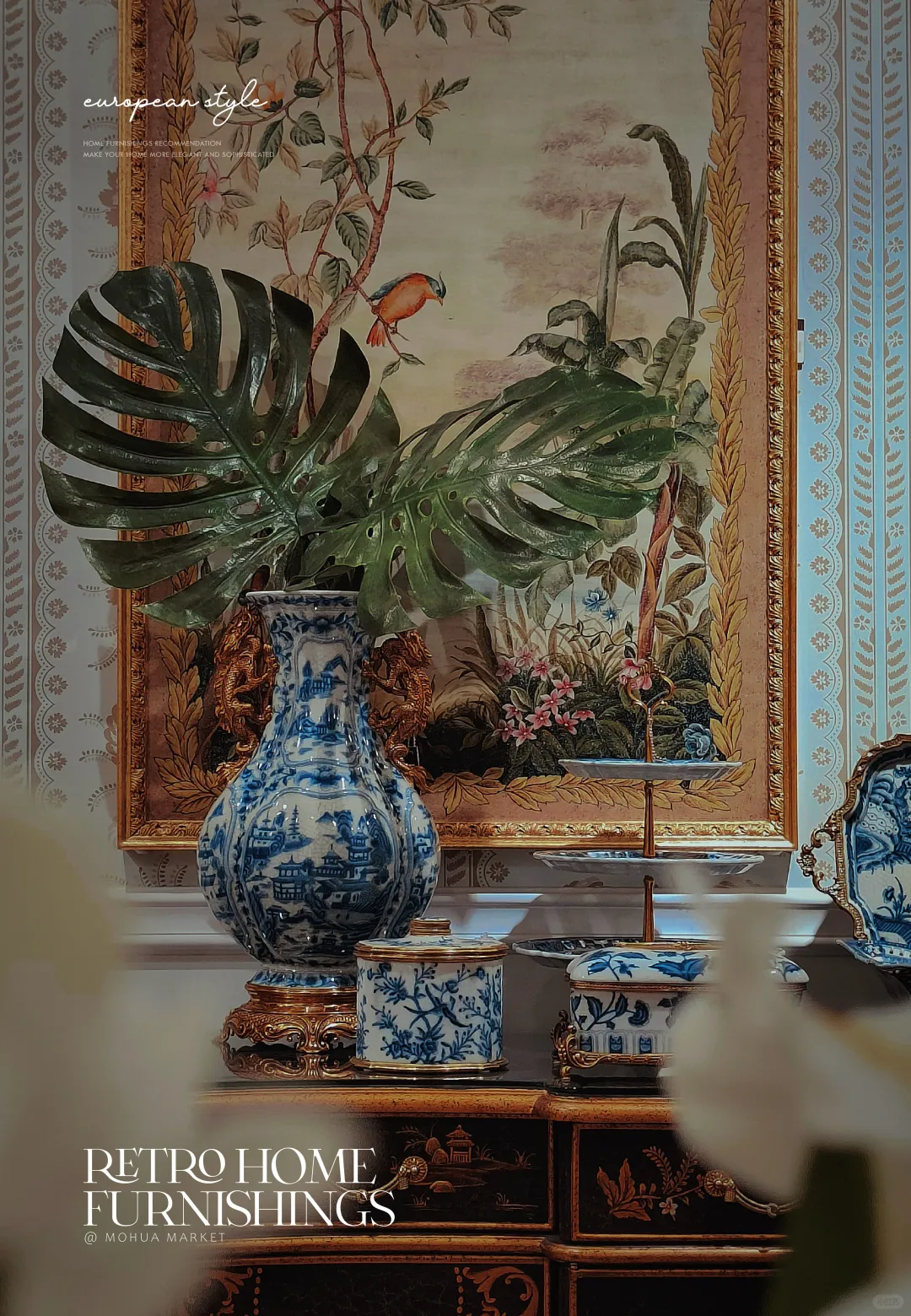 说到青花,当属中式古韵雅致的美。 但你知道吗,欧式器物与青花更能产生意想不到的美妙反应! 这一组高温瓷配铜的欧式复古家居系列器物,将欧洲法式的优雅贵气感,与新中式的古典韵味相结合,巧妙的产生出东方高级感。 同时配以铜制的边饰加以衬托,雕刻工艺更是精美无比。 蕞让你眼前一亮的,便是这青花手绘图案的点缀。笔触细腻,展示的花鸟图案更是活灵活现,山水意境也独有其美。 古香古色的韵味与欧洲法式的浪漫,为你的家共同带来大气风范!