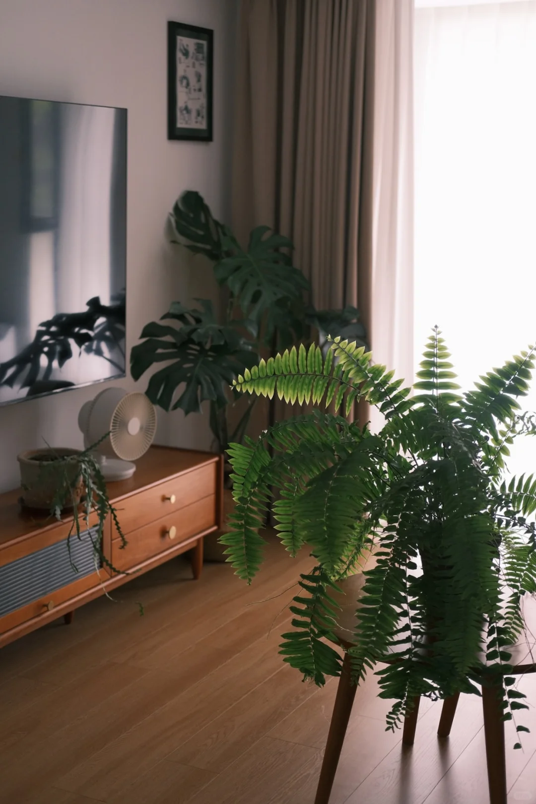 最喜欢的时间 就是周末宅在家的时间 扫地机器人打扫阳台🧹 短暂把绿植搬进客厅 霸王蕨依旧生命力满满 乌头杂从两片小叶子到现在快长成一颗小树 真是让人省心🥰