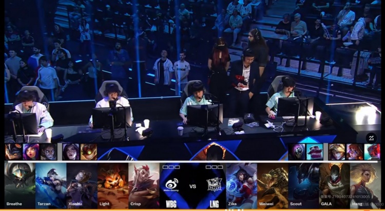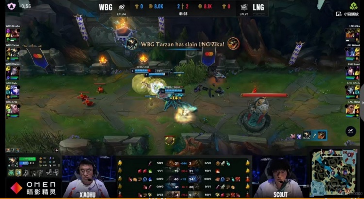WBG:上单Breathe、打野Tarzan、中单Xiaohu、下路Light、辅助Crisp
