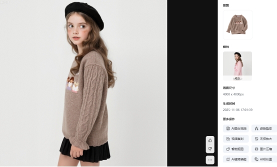 易可图是一个电商人专用的在线AI设计平台,在AI模特方面有AI模特试衣和AI万能穿戴这两个功能,让我们可以用一张商品平铺图来生成商品模特图,这样可以大幅提升商品展示效果,提示买家的购买意愿。