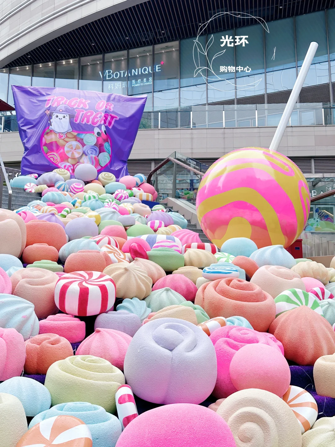 重庆光环万圣节布置的糖果瀑布太好拍啦! 马卡龙配色真的很梦幻🥰多巴胺的色彩可可爱爱的 这次万圣节我要做捣蛋鬼🥳 现场很多小伙伴都在和糖果拍照📷 这次光环万圣节仪式感UP!!!! 不愧是我的环环 朕爱🐭了 快和小姐妹一起去打卡巨型糖果瀑布吧!!!
