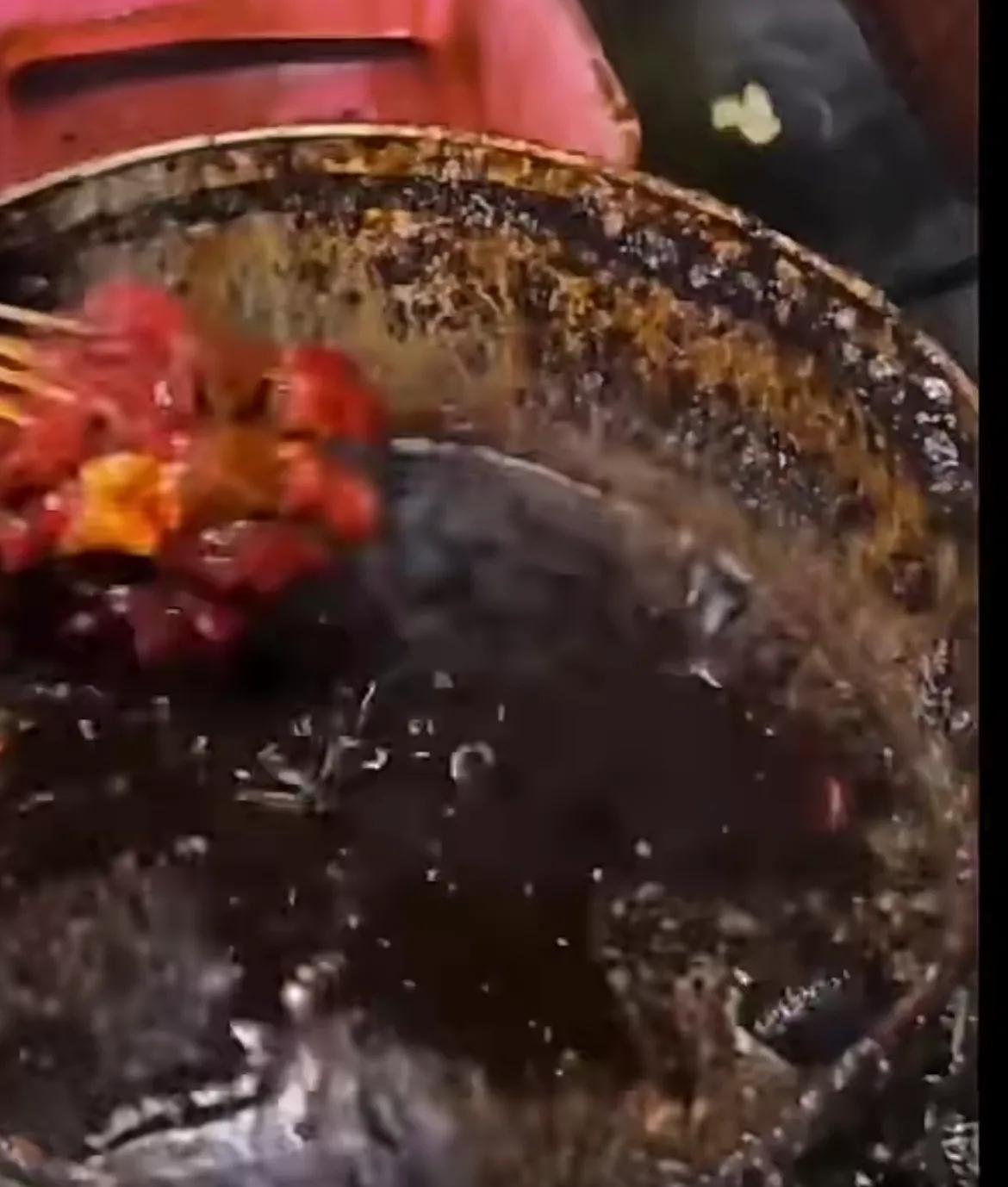刚出炉的羊肉串。真是可怕至极,黑乎乎的桶里装的什么玩意儿?现在这些人什么都能研制出来!你还敢吃不吃了?(网图侵删)