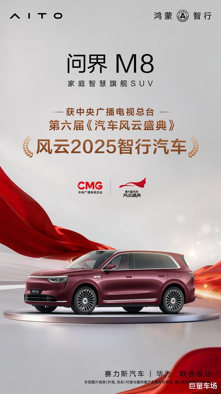 近日,由中央广播电视总台主办、总台财经节目中心特别策划的第六届《汽车风云盛典》圆满落幕。“家庭智慧旗舰SUV”问界M8亮相盛典,荣获“风云2025智行汽车”荣誉称号,凭借在智能汽车领域展现出的硬核实力,赢得行业权威与市场消费者的双重认可。