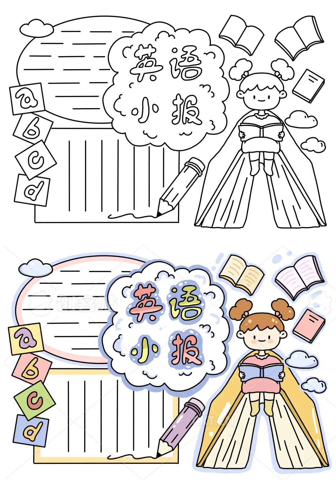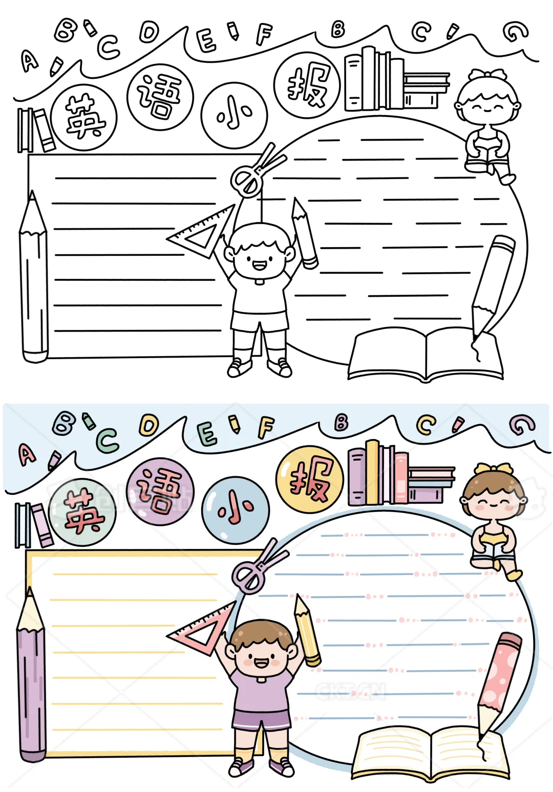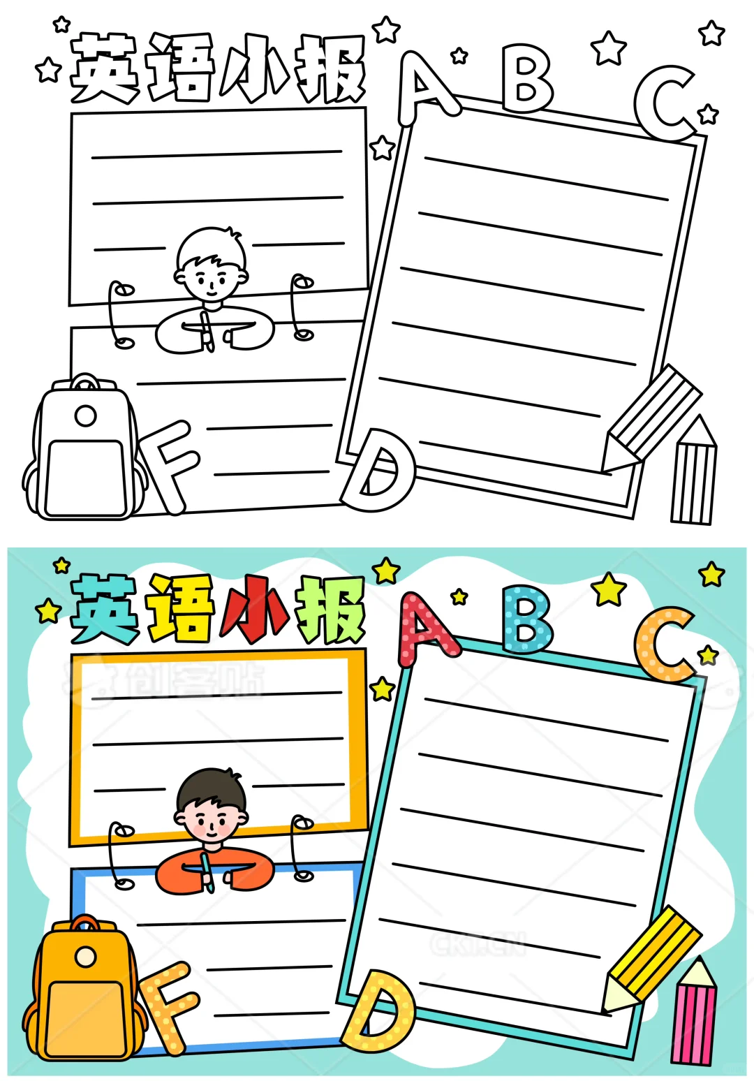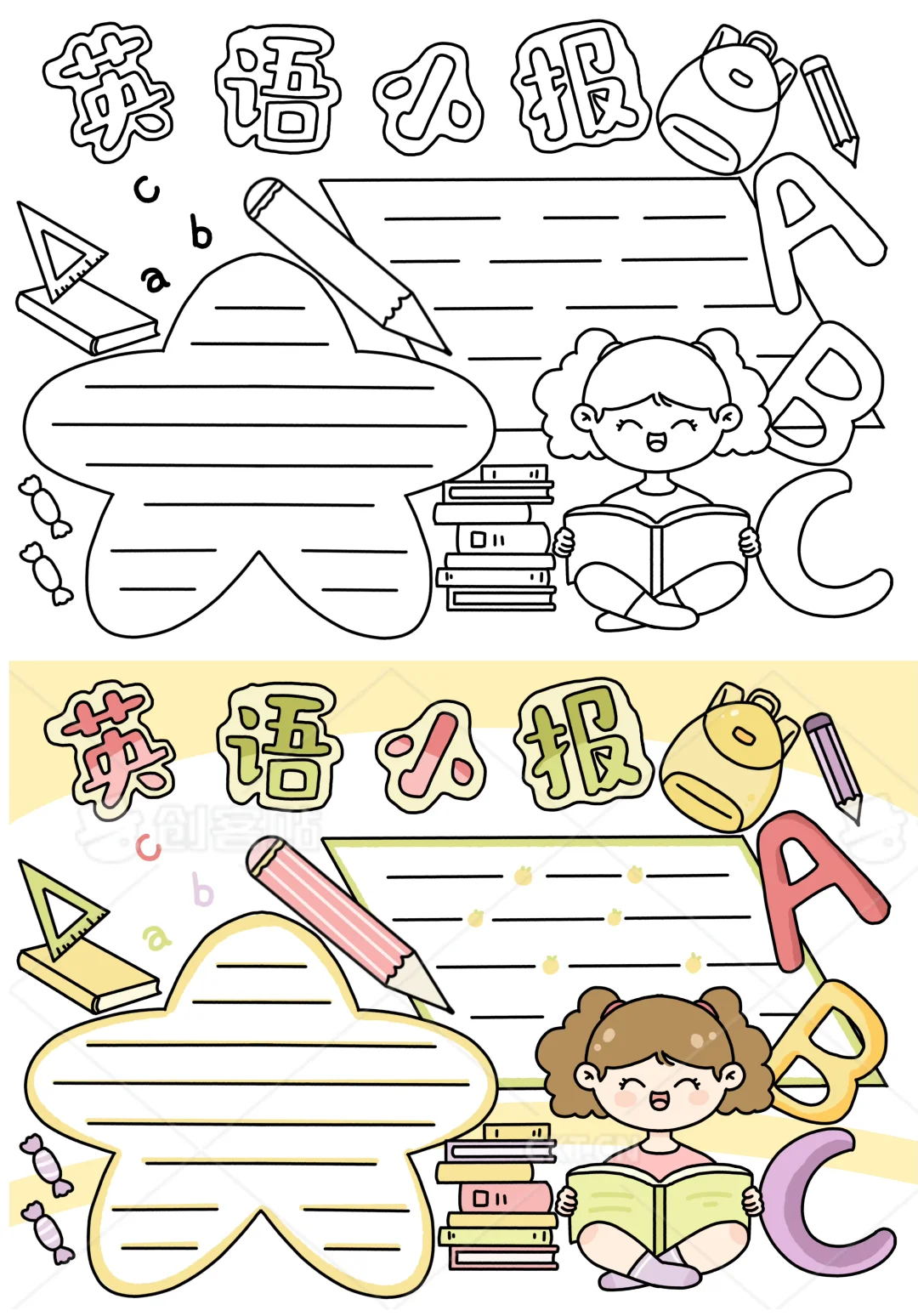 📚英语手抄报、英语小报模版,部分有线稿。 📚模版图片来源于