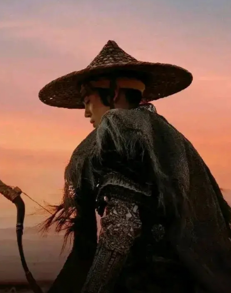 于适《封神第二部》造型曝光,身披披风,手拿弓箭,头戴草帽,剑眉星目。