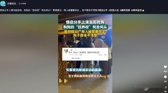2024年10月30日杭州一对情侣分手后为争抢狗子的饲养权,竟当街厮打起来!原本很伤感的事情,只因男子的一句话,把围观的女孩逗笑了!网友笑疯了:哈哈哈哈哈,笑死我了...... (信息来源:安徽视讯,2024年10月30日,《情侣分手上演当街抢狗,狗狗的“抚养权”何去何从? 围观群众:两人被警察带走 ,狗子跟谁不清楚》(文中为化名)) 2024年10月一个普通的夜晚浙江杭州某小区楼下,一对情侣当街上演了一出“抢狗大战”。男子紧紧抱着金毛女子则拼命拉扯试图夺回狗狗。 两人你争我夺互不相让场面一度十分混乱,引来众多路人围观,甚至惊动了巡逻警察。这起事件迅速在网络上发酵成为网友们热议的焦点。 在很多人眼里宠物不仅仅是动物更是家庭的一员,情感的寄托。在恋爱期间宠物往往是维系感情的纽带,见证了情侣间的甜蜜与承诺。 然而一旦感情破裂宠物的归属问题就成了一个棘手的难题。在杭州的事件中男子抱着金毛犬,口中念叨着“爸爸来接你”女子则怒斥对方“拐狗”。 双方都声称自己才是狗狗真正的主人都不愿放弃对它的“抚养权”。这背后既是对宠物的真挚情感,也夹杂着害怕失去的焦虑以及对前任的愤怒和不甘。 网络上网友们对此也是议论纷纷。有人表示感同身受认为宠物就像孩子一样,分手后很难割舍;有人则认为争夺宠物的行为太过幼稚,甚至有些滑稽; 还有人指出宠物的归属问题应该理性对待,不能因为情感而忽略法律和道德。这些评论反映了社会大众对宠物的不同看法,也折射出人们对情感、责任和法律的思考。 宠物的归属问题不仅仅是情感纠纷,也涉及到法律和道德的界限。我国法律规定宠物属于财产其归属应根据双方对宠物的投入、照顾情况等因素进行判定。 然而在实践中由于缺乏明确的法律条文和执行细则,宠物归属的认定往往存在争议。在杭州的事件中警察最终将双方带回警局进行调解,但最终结果如何我们不得而知。 更值得深思的是宠物在情侣关系中的特殊地位。它不像其他财产可以简单分割它承载着情感和记忆,是双方共同生活的一部分。 将宠物与孩子抚养权进行类比虽然有些夸张,但也折射出宠物在人们心中的分量。