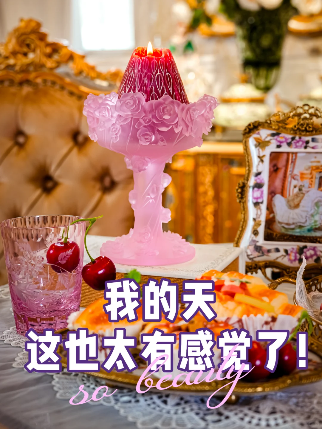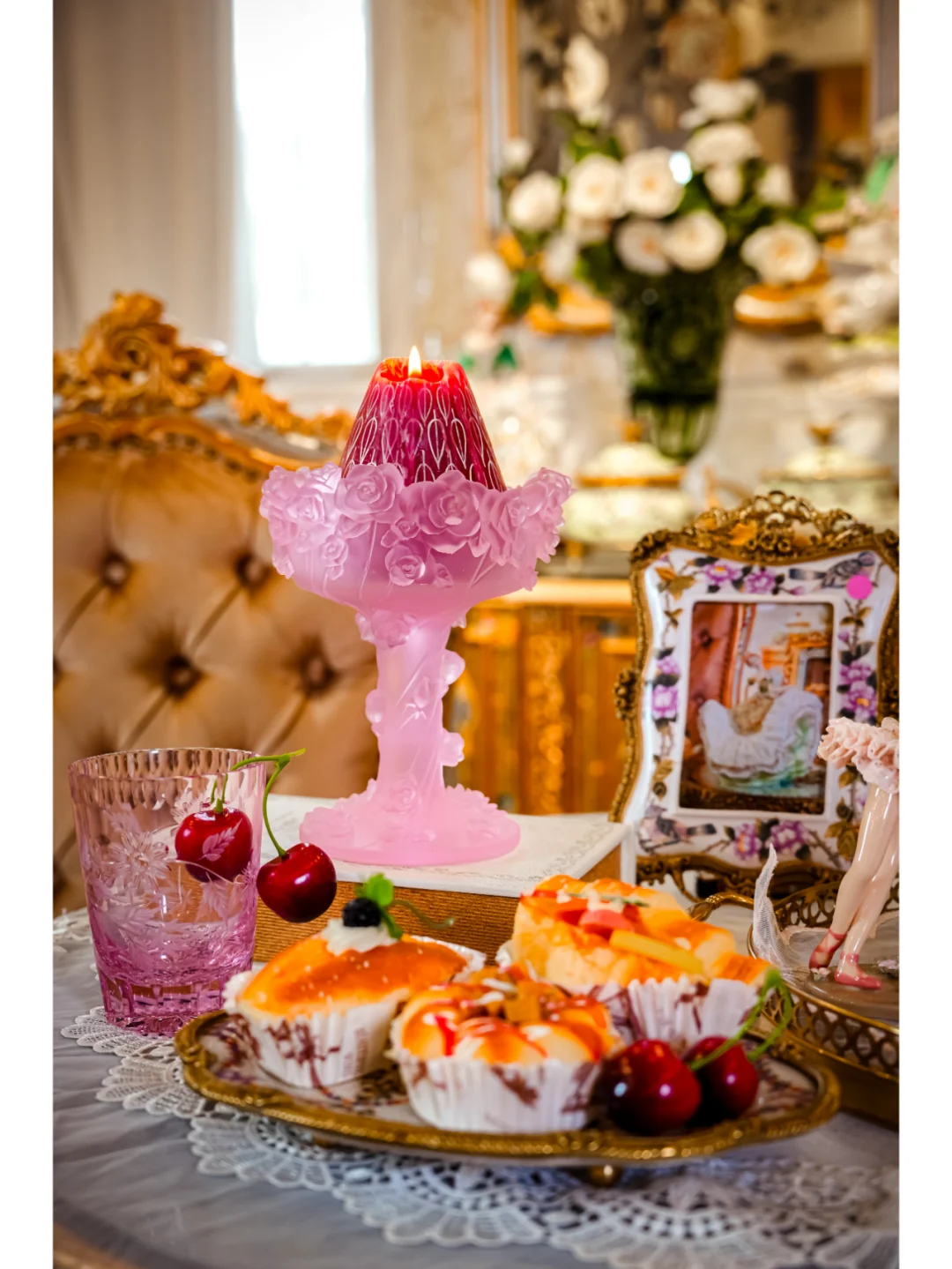 [樱花R]水晶法式琉璃冰粉色的家居器物,优雅的烛台,超高的颜值,立体玫瑰花浮现在烛台上,与烛光共舞,与爱情共生。