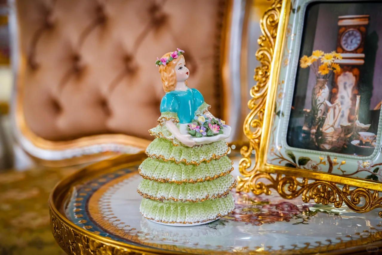 手工捏制的蕾丝裙陶瓷娃娃摆件,裙摆逼真仿佛真实织物一般,配色更是清新可人!