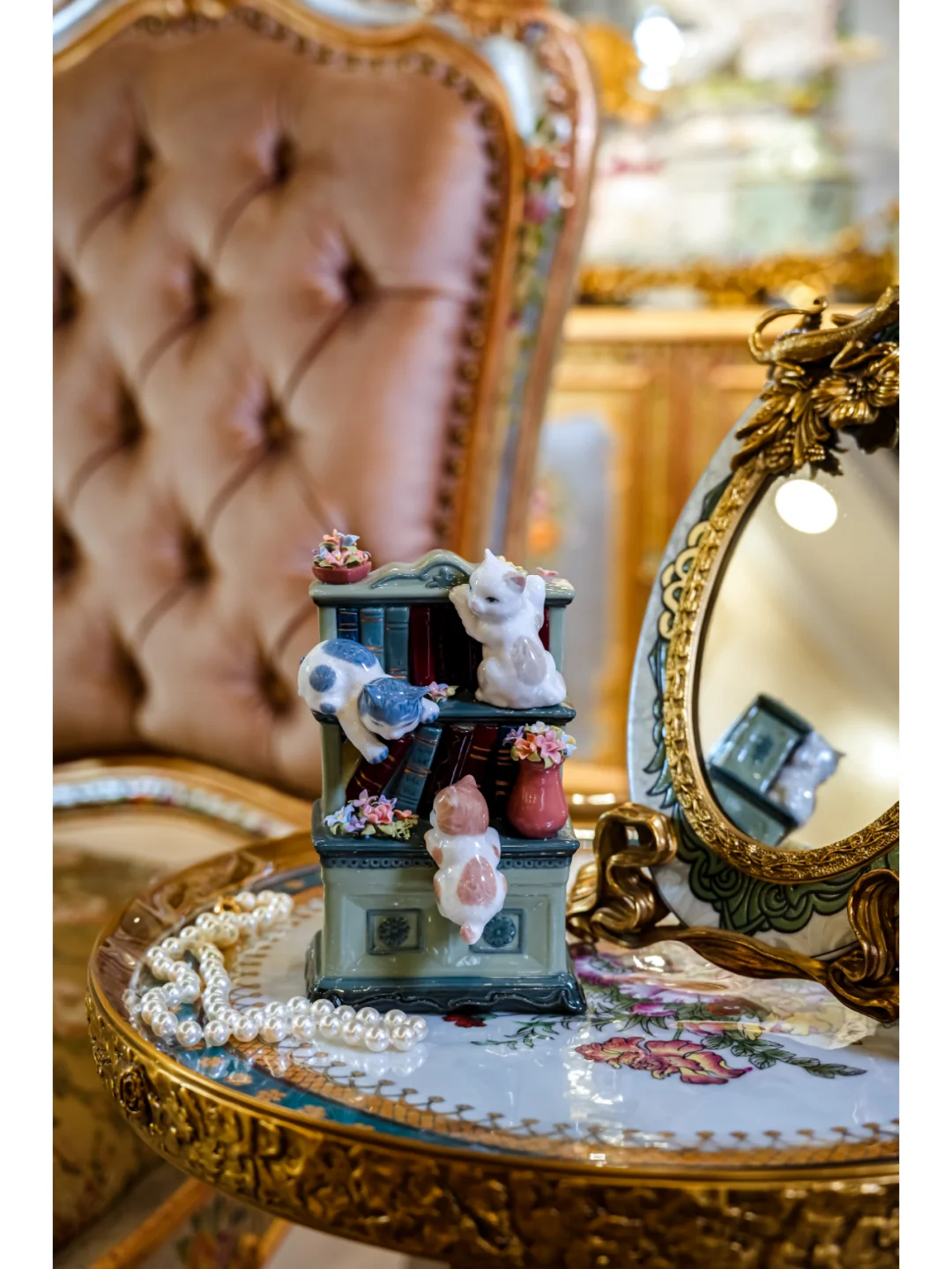 [爱心R]手工高温瓷三只小猫书柜音乐铃摆件[玫瑰R]