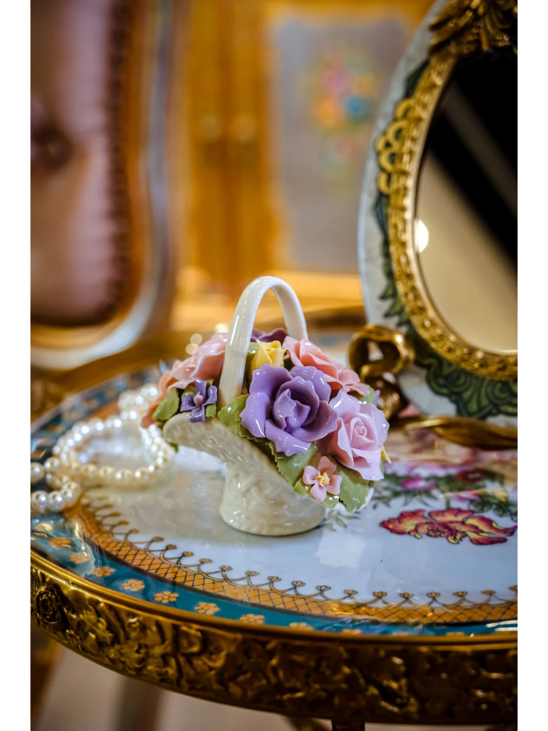 [爱心R]手工瓷花欧式复古花篮花盆小摆件[玫瑰R]