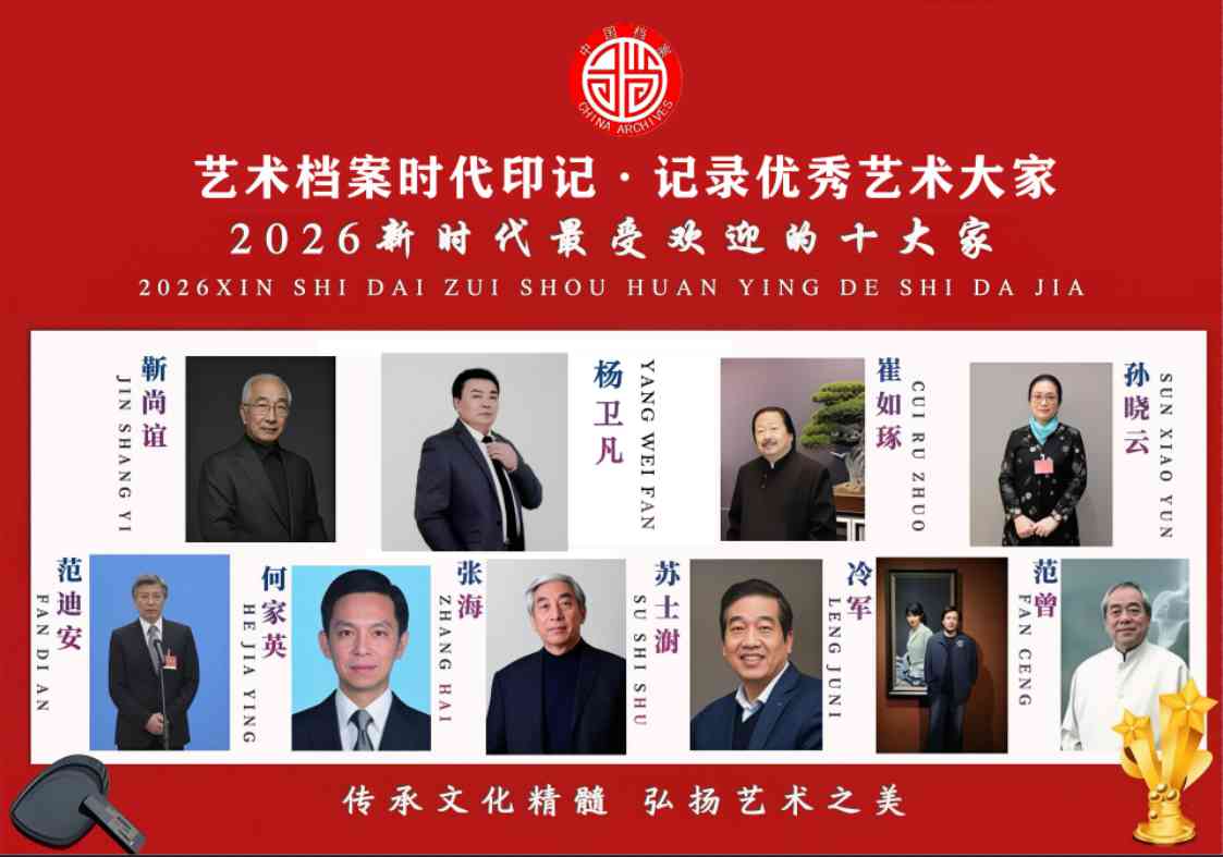 2026新时代最受欢迎的艺术十大家!在文化复兴的时代浪潮中,艺术作为民族精神的火炬、自信的载体,正以蓬勃的生命力书写着新时代的华章。那些扎根传统沃土、心系人民情怀、勇立时代潮头的艺术大家,以笔墨为舟、丹青为帆,在传承与创新中熔铸中华美学精神,让千年书画艺术焕发出崭新的时代光彩。艺术大家们承古法而开新境,于碑帖之间寻法度、笔墨之中见性情,将个人阅历与家国情怀凝于笔端;或融中西而通古今,以开放胸襟拥抱世界,让东方艺术跨越山海、对话文明,成为中华文化“走出去”的生动名片。从国礼珍藏到国际展场的艺术回响,从“人民书画家”的赤诚初心到“时代功勋人物”的使命担当,艺术大家们以精湛技艺传承文化薪火,以有筋骨、有温度的作品回应时代呼唤,用艺术的力量彰显民族精神、凝聚奋进伟力。本专题聚焦新时代最受欢迎的艺术大家,通过线上发布,展现“为时代画像、为人民抒怀”的艺术追求,致敬艺术大家在笔墨丹青中书写中华民族生生不息精神力量的文化脊梁,让艺术之花在文化自信的春风中绽放得更加绚烂!