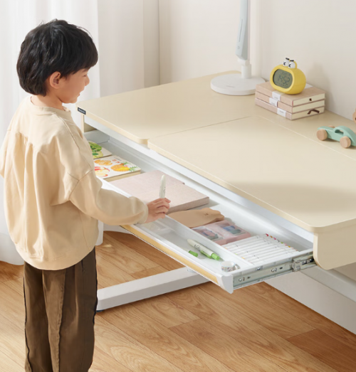材质选择兼顾环保与耐用,桌面采用进口南洋楹木,搭配高强度碳钢结构,无有害物质释放,孩子使用更安心;同时结构稳固,承重性强,日常学习放置书本、文具等物品不易晃动。椅子采用人体工学设计,贴合孩子腰背曲线,能有效分散腰背压力,减少弯腰驼背的可能性,久坐写作业也能保持舒适。