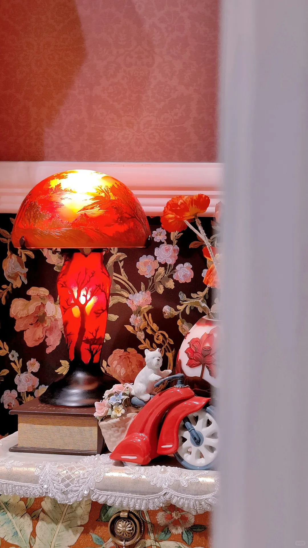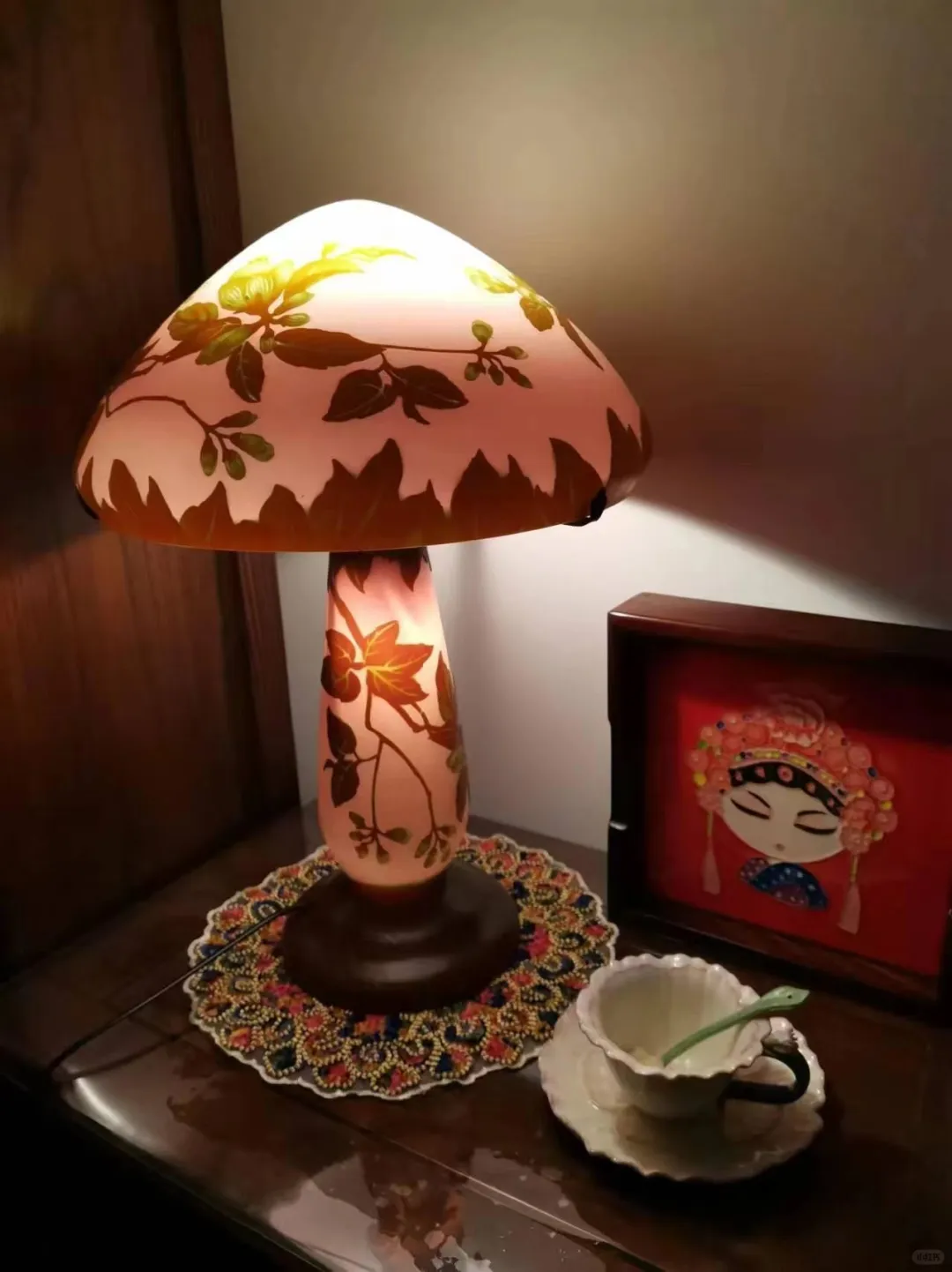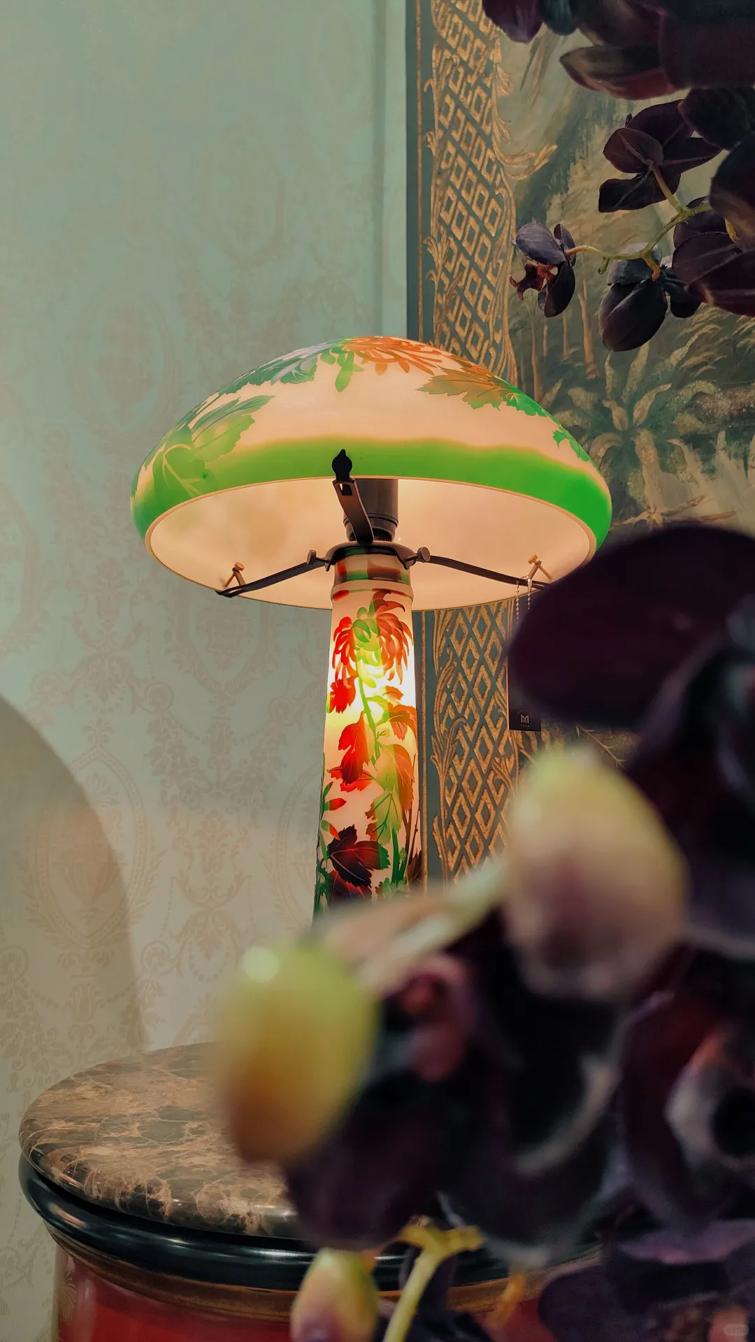 galle中古台灯✨是套色玻璃浮雕工艺品灯。灯的颜色是一 层层玻璃叠加的,有一定厚度,不是玻璃颜料绘制的,所以永不退色,多少年后也不会旧的。跟市面上的彩绘灯是不一样的。现在会这种工艺的老匠人已经越来越少,存世的款式和数量也不多,拥有也是看缘分。