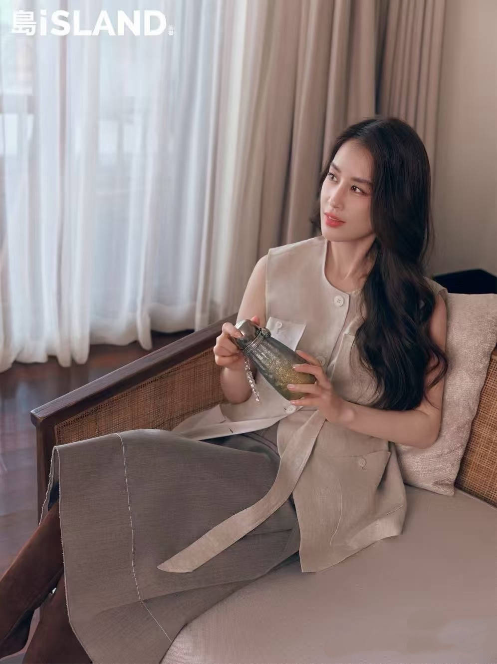 利落大气的女强人形象,也特别适合现在的黄圣依。浅棕色的马甲、深棕色半身裙,一双麂皮绒的长靴,这打扮又美又飒很有气势。