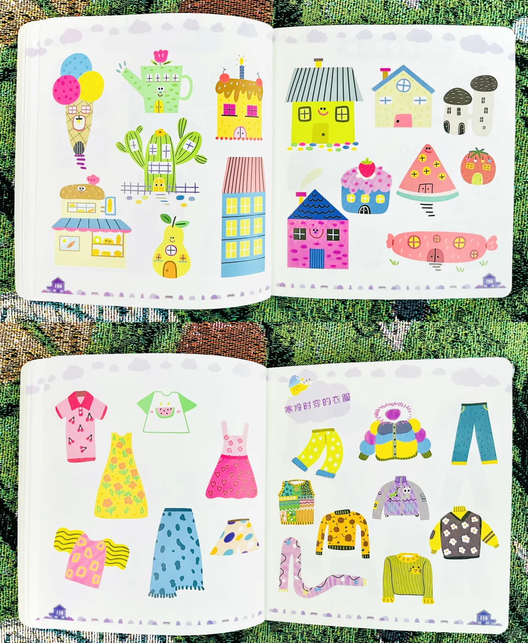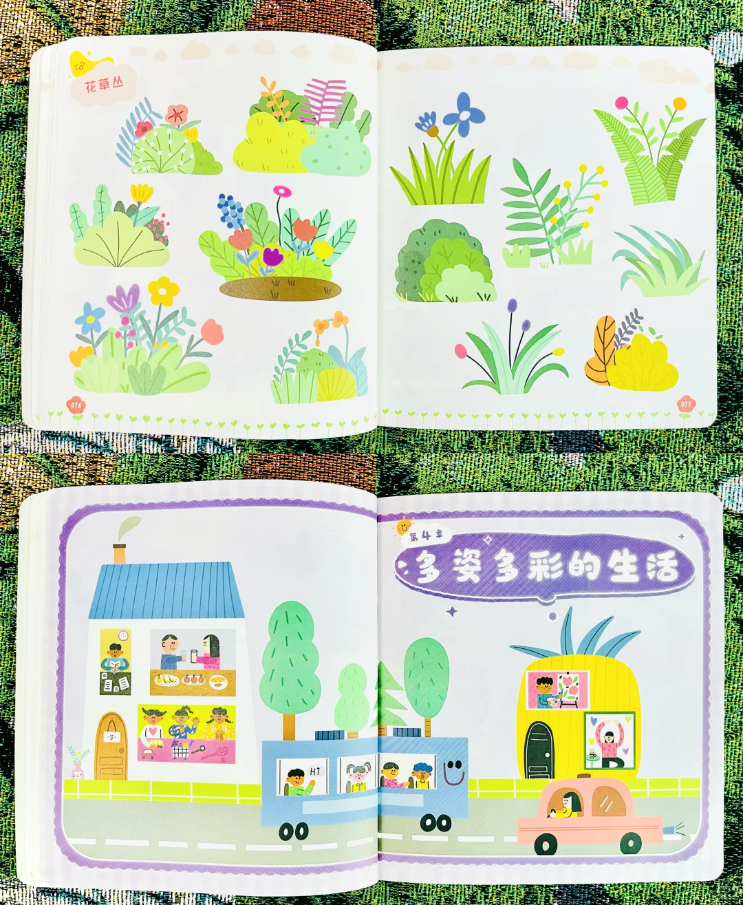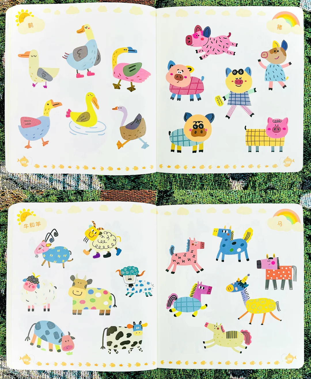 📚可以当成素材书来用,有人物、动物、植物、食物、家居用品、玩具、文具、天气、服装等多个系列,部分图片内页看上图👆,书中的一切事物都变得简单又不失艺术感。