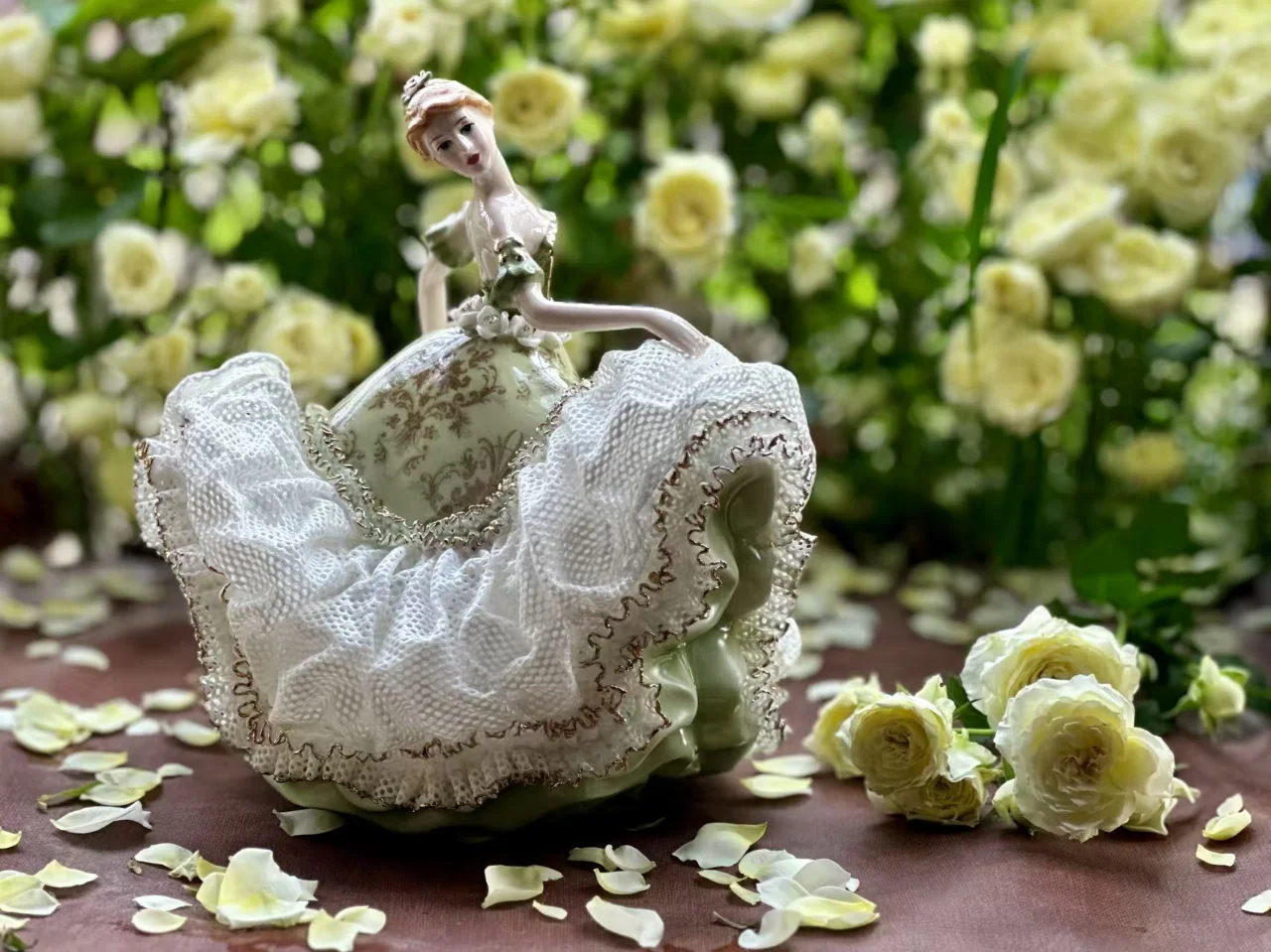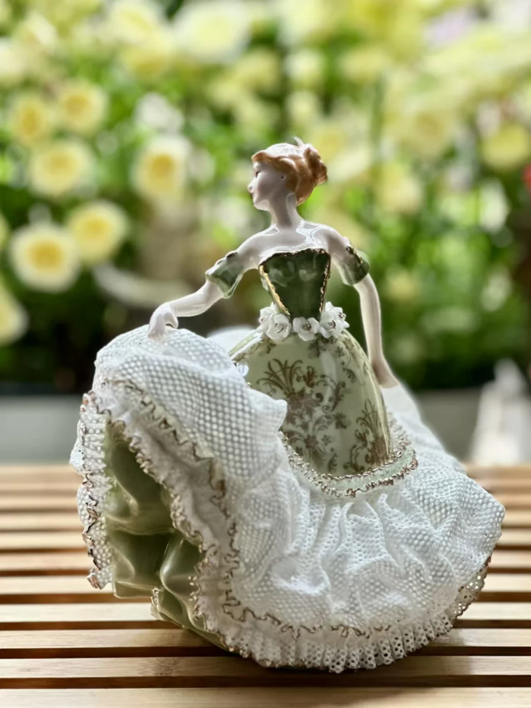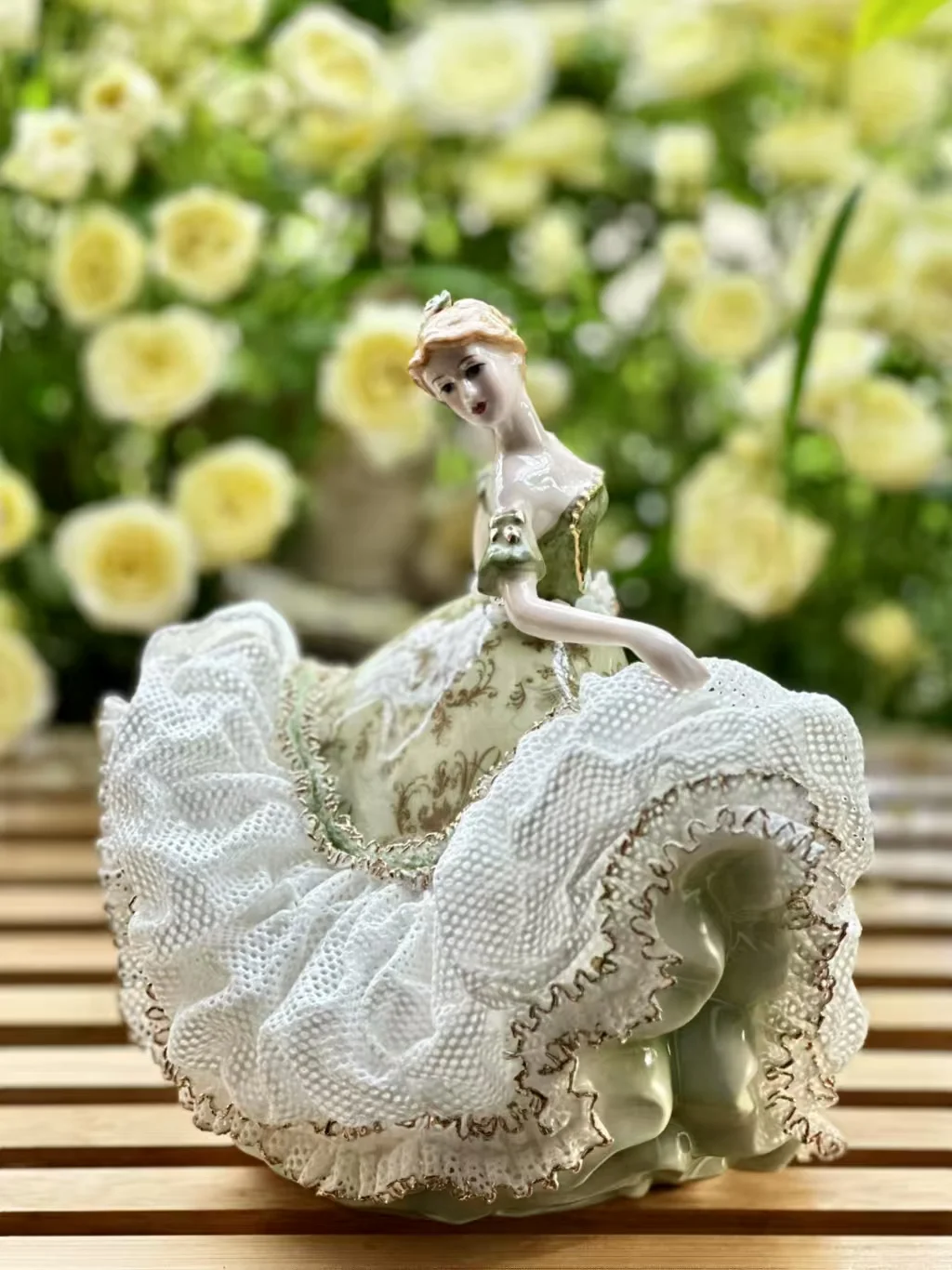 尤其这款绿色裙子的跳舞的少女,精美的手工高温瓷,质感细腻,蕾丝的装饰更是增添了一份神秘与浪漫,仿佛是从童话世界中走出来的小精灵。