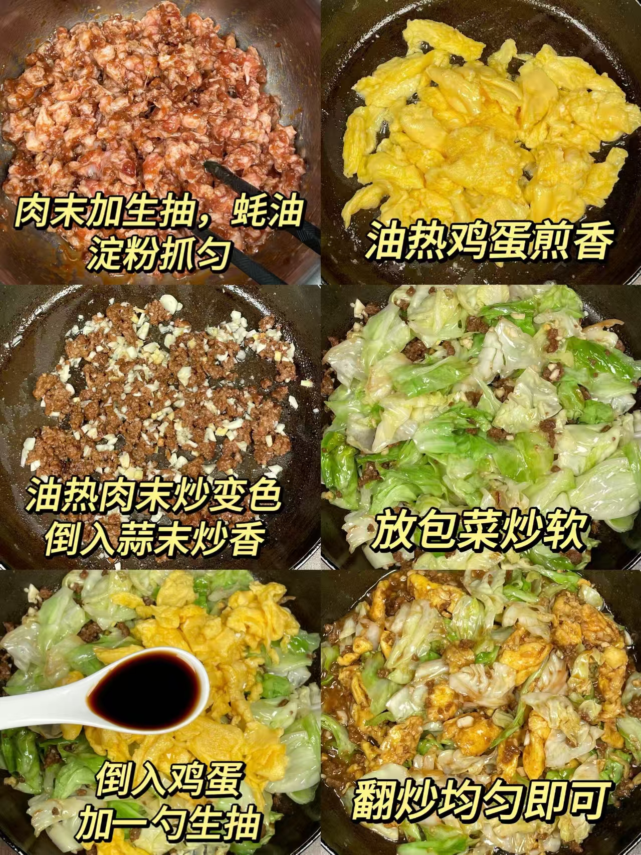 ✅️ 包菜鸡蛋炒肉末(咸香入味,荤素搭配)