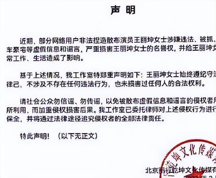 03 明星关系,撇清关系詹某某作为王丽坤的前夫,这一点无疑增加了案件的关注度。2023年2月,当詹某某被捕的传言流出时,王丽坤工作室曾发布声明称“王丽坤女士遵纪守法,不涉及任何违法行为”。