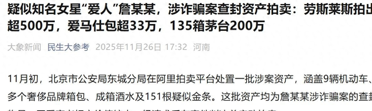 这位詹某某不是普通人,他身上最引人注目的标签是“知名女星王丽坤的前夫”。他曾以豪车豪宅的奢华形象示人,如今这些奢侈品却成了涉案资产被公开拍卖。