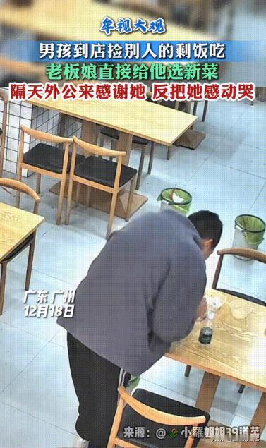 这个老板娘火了!广东一智障男孩去饭店捡剩骨头吃,老板娘看他憨傻的样子心里很怕,但她过意不去决定做点什么!不料2天后,男孩舅舅特地回赠的一份特别的礼物,让老板娘瞬间哽咽了......网友:这就叫双向奔赴,我这黑心奸商都流泪了。 (信息来源:牟视大观) 世上还是好人多!广州一老板娘彻底火了,有一天突然店里来了个智障男孩竟然捡别人吃剩下的骨头吃,老板娘看他太可怜了,于是决定做点什么,谁知最终的结局却让人感动不已。 小罗的善良和勇气值得点赞,有人觉得,小罗在得到感谢时流泪了,这显示出她心地善良,情感真挚。 也有人说男孩也很善良,知道感恩,把别人的好记在心里告诉了家人,一顿剩饭一篮水果却戳中了无数网友的泪点。 在这个快节奏、压力山大的时代,这些小细节特别让人珍惜。生活中其实挺美好的,有很多东西值得我们好好珍惜。 小罗说因为自己被爱,所以也愿意力所能及地去爱别人,她没做啥了不起的事,只是做了个普通人都会干的事情。 时间回到12月16日下午两点多,小罗店里没顾客,他正休息这时一个男孩急匆匆地走了进来,小罗急忙上前,问那孩子想吃什么那孩子没吭声只是摇了摇头。 他直接走到那张客人刚吃完的桌子旁,坐下来开始吃了起剩下的菜小罗懵了,这男孩看着有点“不对劲”,和正常人不一样。 店里就她一个人,老公回家休息了,说实话她有点害怕怕男孩突然发作,但看着男孩吃剩菜的样子又觉得可怜,犹豫了一下,小罗还是忍不住了。 她轻轻地跟男孩说:你饿了吗?别吃剩菜了,我给你打点新的吧。没想到男孩居然听懂了,停了下来,他点了几个菜,小罗就帮他盛了一盒饭。 男孩吃着饭突然说:这饭真好吃,小罗一下就笑了,开店这么久听到客人夸奖,心里总是高兴的,男孩吃着饭也放松了警惕,和小罗简单地聊了几句。 吃完后男孩就离开了,小罗以为这事就过去了,毕竟每天都会遇到各种各样的客人。 谁知道两天后12月18号,一个三十多岁的男人提着满满一篮水果找到了店里,原来他是男孩的舅舅,他特地来感谢小罗。 小罗稍微有点不好意思,感觉那不过是帮个小忙,舅舅说这孩子小时候遇到些事,智力受了影响。 家里人都很担心他,没想到他会告诉家人这件事,更没想到会遇到小罗这样好心的人,小罗这才明白,为什么男孩那天看起来不一样,她心头想起了弟弟,年纪跟那男孩相仿,但生活却截然不同。 想到这小罗忍不住红了眼眶,这件事很快在网上发酵引发热议。有人说现在开餐饮的,不是舍不得这点钱,是真的会害怕遇到各种意外。 但正是这种平凡的善良,才更让人感动,我们也祝愿小罗的店生意越来越好,好人一生平安。 让我们一起努力,让这个世界充满爱和希望!