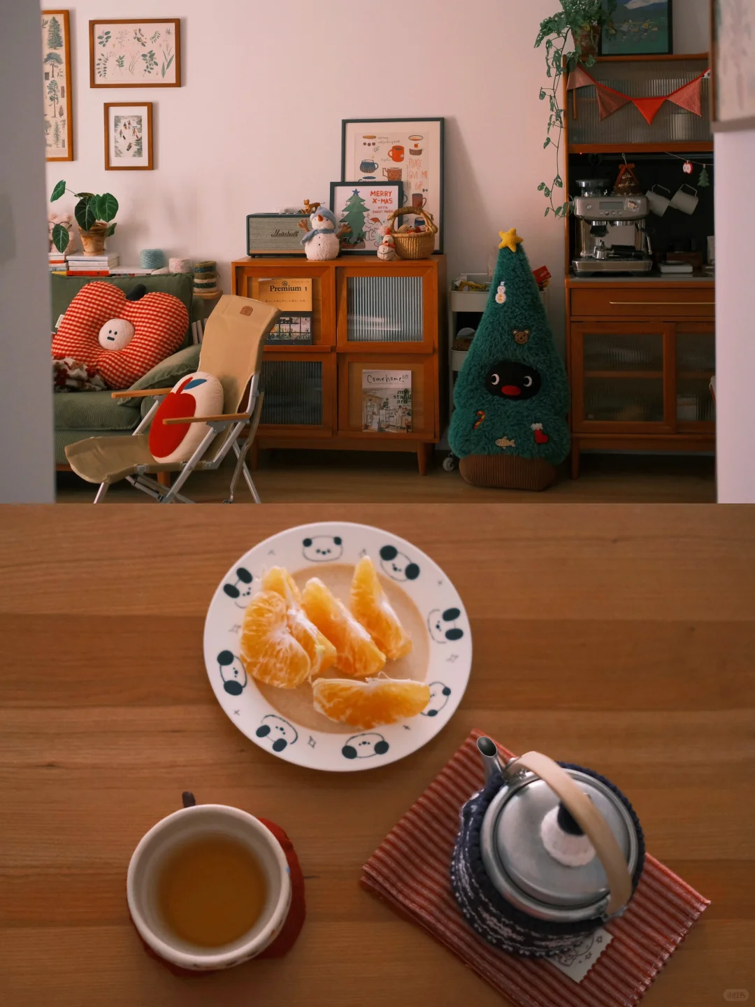 有太阳的冬天下午 缝了一只不完美的杯垫 泡了一壶热茶 给圣诞树做了一颗毛球挂件 阳台上晒着新买的鲜花 冬天真是个容易感知到幸福的季节啊~