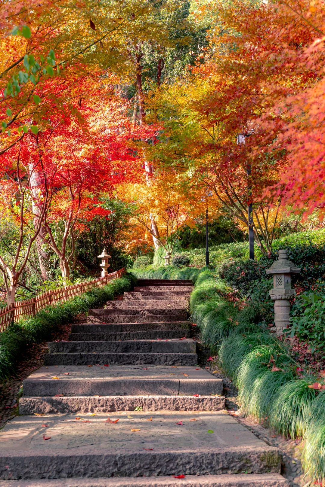 📍:永福寺 、九溪烟树 * 从灵隐路一直步行到永福寺,这一路都是枫叶,正是橘黄红绿时,用脚步丈量秋天的每一寸时光,到永福寺里,回头一望一束光照亮整个小径,一切都是刚刚好! * 而对于喜欢徒步的旅行者,九溪烟树是不能错过的宝藏哦,尤其是在清晨有阳光☀️的时候,九溪烟树这个名字巨象化了,悠悠小径里,沿途小溪、枫树、茶园,亭阁、寺院,村落,都具有很高的观赏性! * 如果再次来到杭州,我还是想再去一遍!