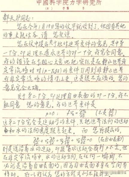 1964年,一个知青在看钱学森的论文时,发现方程推导错了,就给钱学森写信,谁知钱学森不仅回了信,还说:“感谢您指出我的错误!” 信源:澎湃新闻2022-07-14《钱学森向一位年轻人道歉:感谢您指出我的错误》 1964年发生了一件令人感动的事,那时候钱学森已经是对我国堪称最重要的科学家了,然而谁能想到一位来自新疆的知青却发现了钱学森在论文里的错误,并且勇于指出,钱学森得知后立马回信。 如今中国面临着许多科技难题,需要新一代的科技人才去攻克,这些人才不仅需要具备高学历和高技能,更需要具备崇高的家国情怀和科学精神。 钱学森的经历对年轻人来说,是极好的榜样和鼓舞,他通过自己的行为,向我们展示了怎样才是真正的科学家,怎样才是真正的爱国者。 他的精神激励我们,继续在科学探索中奋勇向前。 我们应该学习钱学森的科学精神和家国情怀,培养新一代的科技人才,让他们成为国家的栋梁之材。 时间回到1964年,当时郝天护还是个在新疆建设兵团农学院劳动锻炼的科技人员。 1953年这位先生从清华走了出来,那时正好听了钱学森的讲座,对力学这门学问产生了浓厚的兴趣,他那天随便翻看了《力学学报》,发现里面有一篇是钱学森写的。 钱学森在力学领域那可是个举足轻重的大人物,一说话大家都得认真听,但郝天护在仔细研读后,发现文章中一个公式的推导过程似乎有问题。 反复确认后,他决定写信给钱学森,这封信寄托着一位年轻科技工作者对学术的执着,也带着几分忐忑,说到底我是个默默无闻的小人物,而对方可是科学界的权威大人物。 让人意想不到的是,钱学森很快就回信了,他没摆谱也没生气直接坦白自己错了,他在信里详细说明了公式运用时遇到的问题,同时鼓励郝天护把想法写成文章投稿给《力学学报》。 他还贴心地附上了投稿地址,钱老的回信,展现了一位真正科学家应有的胸襟和气度,他认为科学容不得半点虚假,及时纠正错误,才能避免误导后来者,这才是对科学负责的态度。 收到钱学森的鼓励,郝天护干劲十足,把自己的观点写成了一篇700多字的文章,题为《关于土动力学基本方程的一个问题》,投给了《力学学报》。 然而事情并没有那么顺利,编辑部收到稿件后,并没有立即发表而是将其压了下来,很简单他们怕这篇文会损害钱学森的名声。 科学的道路上竟然还有这种人情世故,后来钱学森知道了这件事非常生气,他坚持要求编辑部发表郝天护的文章。 在他看来科学的进步离不开质疑和求证,即使是权威也可能犯错,掩盖错误只会阻碍科学的发展。 在钱学森的坚持下,两年后也就是1966年3月,《关于土动力学基本方程的一个问题》终于在《力学学报》上发表了。 对郝天护而言,这篇文章的发布意义重大,它不仅肯定了他的学术能力,更重要的是钱学森的鼓励和支持,让他坚定了从事力学研究的决心。 郝天护成功考取了清华大学的硕士研究生,在力学研究上取得了不俗的成绩,他发表了100多篇论文,连续9年担任国家自然基金负责人,1995年还被评选为美国科学院院士。 而对于整个学术界来说,钱学森的这种精神,更是弥足珍贵,他通过实际行动展示了科学精神的真谛,给后人留下了闪亮的典范。 郝天护的故事只是钱学森一生培养青年人才的一个缩影,他的一言一行,对一代代科技人产生了深远的影响。 钱学森的科学精神并非偶然,早年在美国求学时,他就曾当众指出导师冯·卡门的错误,而冯·卡门不仅没有生气,反而对他大加赞赏。 这段经历对钱学森的学术理念产生了深刻影响,钱学森回国后,在教育事业上也投入了很大精力,他看中学生的努力学习和独立思考,很注重提升学生的科研能力。 他在课堂上不是死板念书,而是用自己做的学问,把知识讲得既深刻又易懂,他出题总喜欢打破常规,更看重学生的实际能力。 他改作业特别用心,一点差错都不放过,为了鼓励学生,他还发明了开方计分法,把不及格的分数开方再乘以10,让学生重拾信心。 钱学森的教育理念,体现了他对人才培养的重视,也体现了他对科学精神的传承,钱学森不仅是个了不起的科学家,还是个特别爱国的典范。 他放弃了优厚的待遇,毅然回国为新中国的国防科技事业做出了巨大的贡献。 这位人物被尊称为中国导弹鼻祖和火箭大王,他的成就让我国导弹和原子弹的研发至少提速了20年,钱学森不仅在科研上有所成就,还培育了大量科技人才,为中国科技发展打下了牢固的基础。 我们应该鼓励青少年学习科学家榜样,树立正确的人生观、价值观和文化自信,让他们成为未来科技创新的主力军。