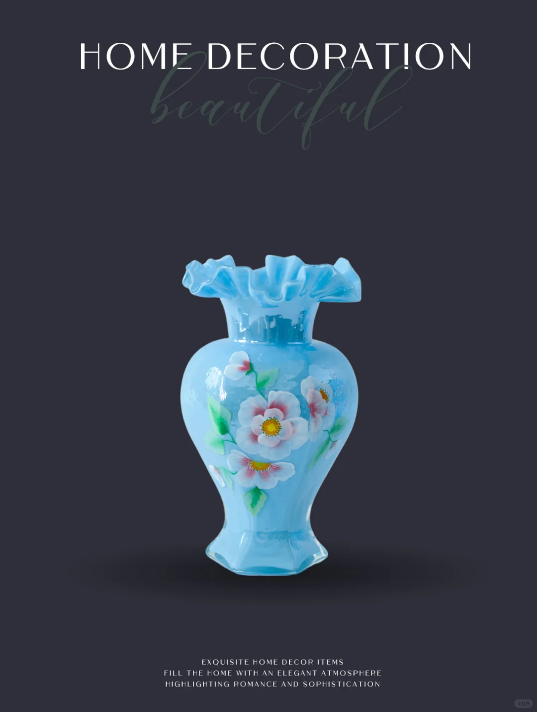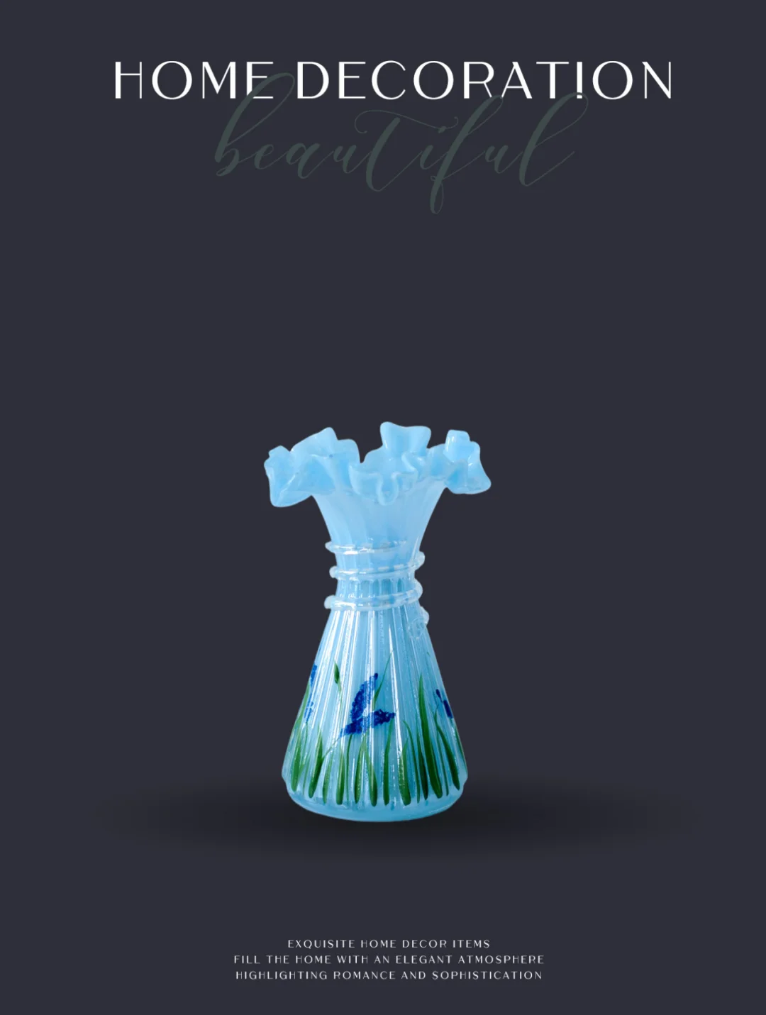 水蓝色系,是芬顿花瓶十分清爽的一个色系。手工制作的瓶身更是别具匠心,造型感十足。工匠们凭借着精湛的技艺,塑造出各种优雅而又独特的线条,每一个角度都展现出不同的美感。
