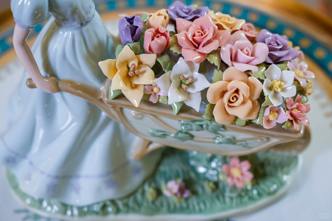 姐妹们,今天挖到一件绝美宝藏!一辆载满浪漫的骨瓷花车瓷偶,真的美到我心巴上✨