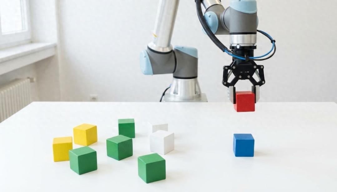 想象这样一个场景:一个机器人面前的桌上摆着一堆物体,其中包含红色积木和蓝色积木,此时,如果给出让它“把红色积木叠到蓝色积木上”的指令,它是否能顺利执行?